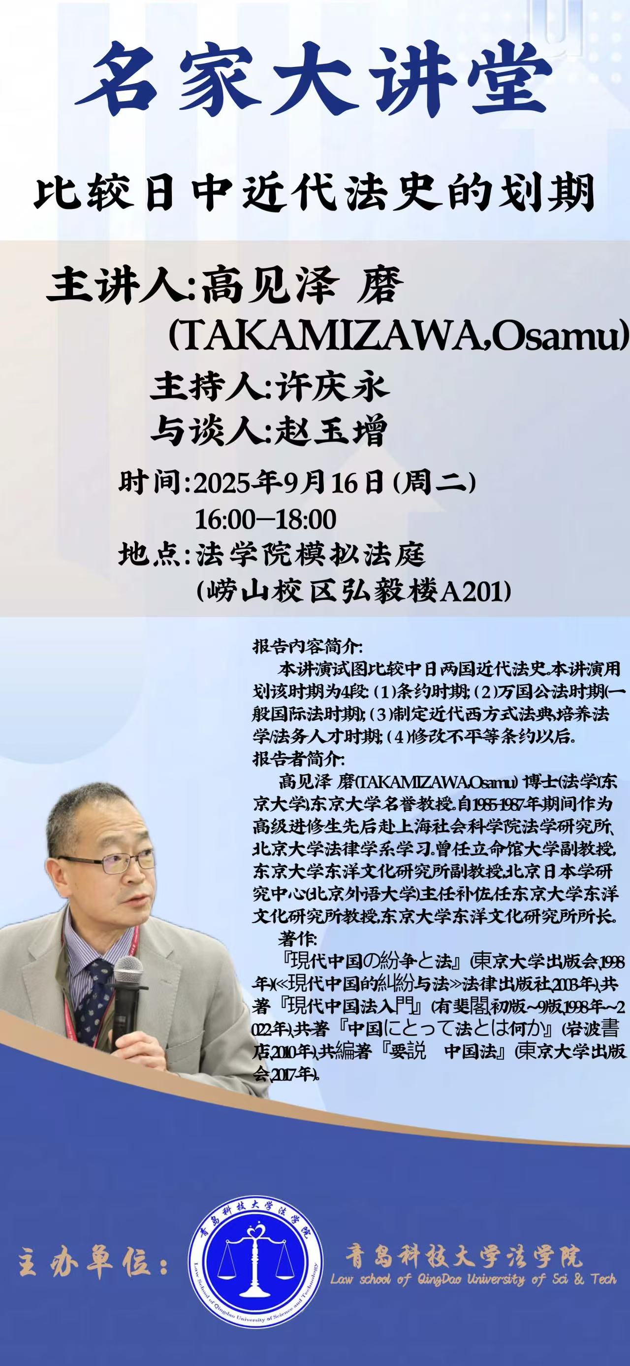 地址:青岛市松岭路99号,邮编:266061,联系电话:0532-88958919