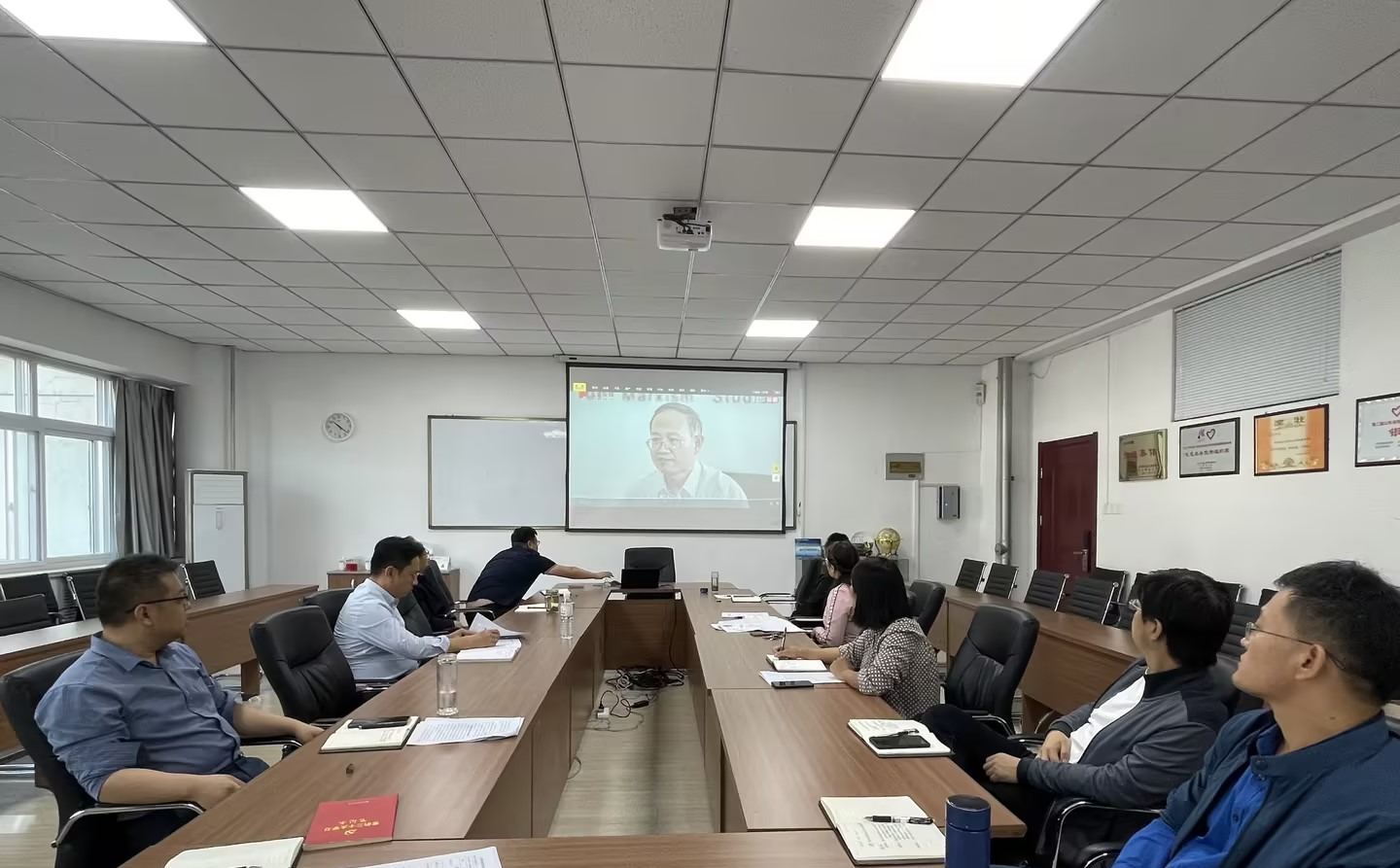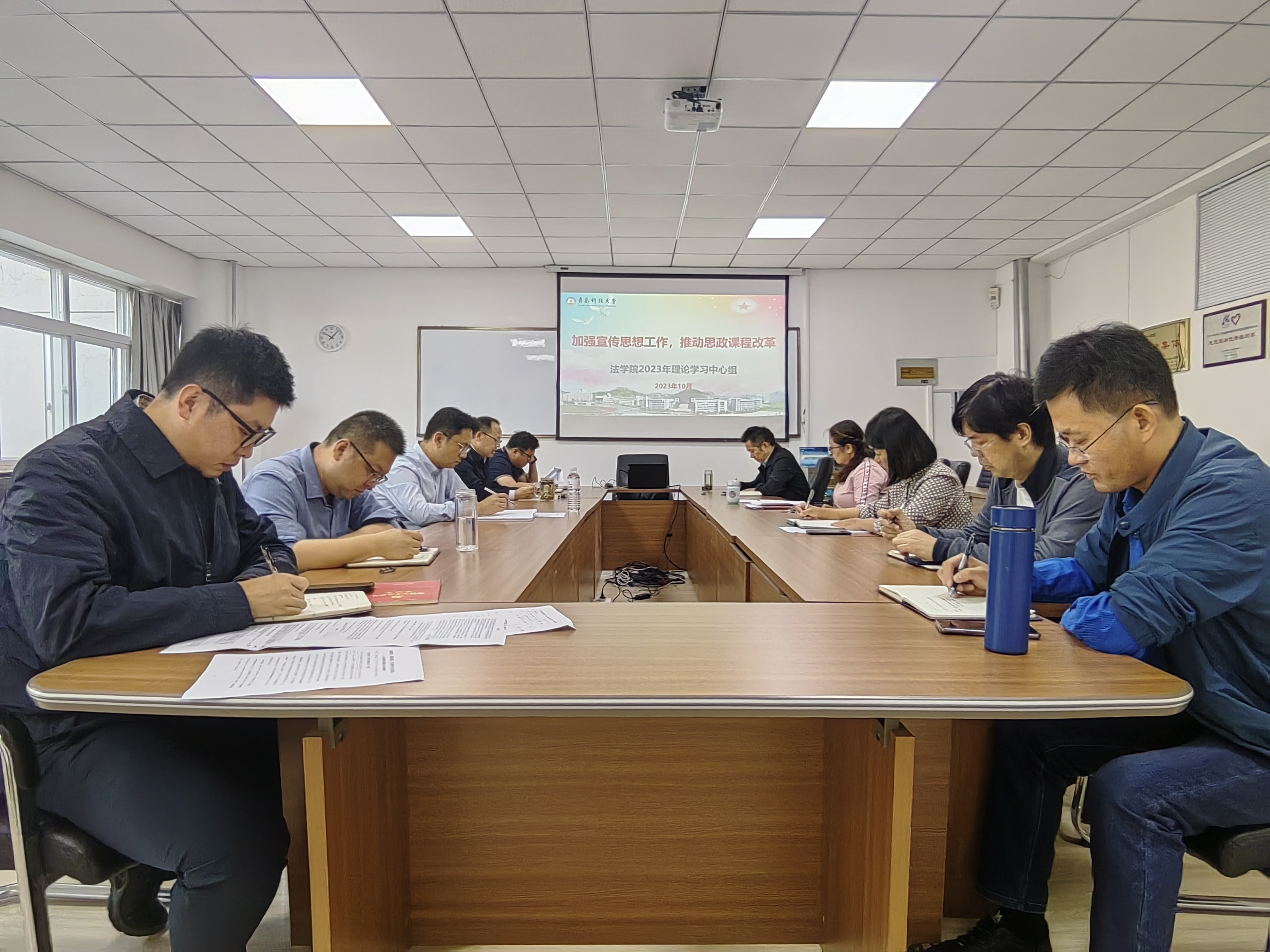 王金堂带领大家原文学习了《习近平对宣传思想文化工作作出重要指示》,李鑫领学了《冯秀军:“大思政课”建设的几个基本问题》,王祥梅领学了《顾晓英、李林:以“有组织实践”推动“大思政课”综合改革》,与会人员共同观看了《领航丨“‘大思政课’我们要善用之”》,随后展开了交流研讨。