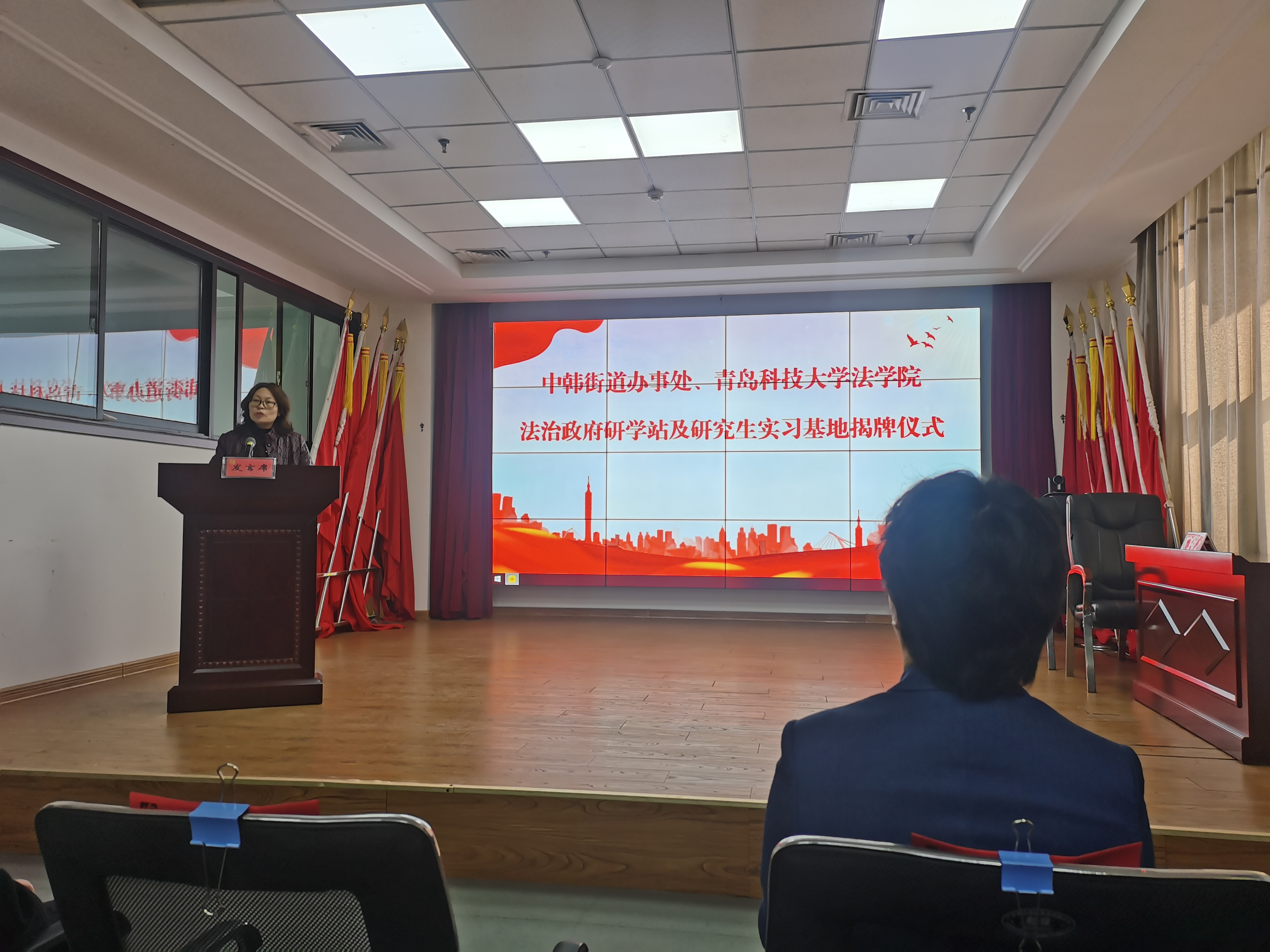 仪式首先由双方领导致辞,中韩街道办事处党工委副书记王东海指出,在提升基层治理能力现代化水平和推进基层法治政府建设的背景下,希望双方借此契机,依托各自优势进一步深化合作,开拓出互惠共赢共同发展的新路子。公司党总支书记李卉指出:双方共建法治政府研学站,是深入学习贯彻习近平法治思想推进法治政府和法治社会建设的具体行动,是更好服务保障高质量发展和现代化建设的有效举措,研学站为sunbet教师提供了服务地方、回报社会的高质量平台。社会工作研究生实习基地为sunbet的研究生搭建了了解基层、历练专业本领、服务社会的良好平台。公司师生将发挥专业优势,为辖区内群众贡献青科大的智慧和力量。