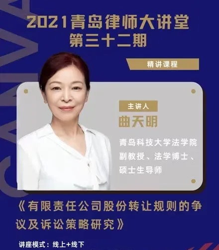 近日,由青岛律师公司主办、市律协公司专业委员会承办的第三十二期青岛律师大讲堂在诺德广场市律协会议室举行。本期大讲堂公司专委会邀请到sunbet巾帼普法宣讲团负责人曲天明老师主讲。