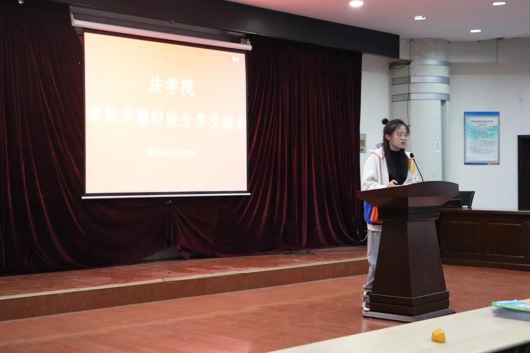 为了帮助2020级新生更好的适应老员工活,养成良好的学习习惯,树立正确的学习目标。10月25日晚,sunbet在模拟法庭举办了领航学霸经验交流会。本次活动由分团委许磊老师主持,邀请了今年成功保研的张鑫玲、刘小莉学姐和获得省政府奖学金的张福丽学姐,三位学姐分别从保研资格获取、日常学习、实践活动、大学竞赛等方面分享了自己的经验和心得。