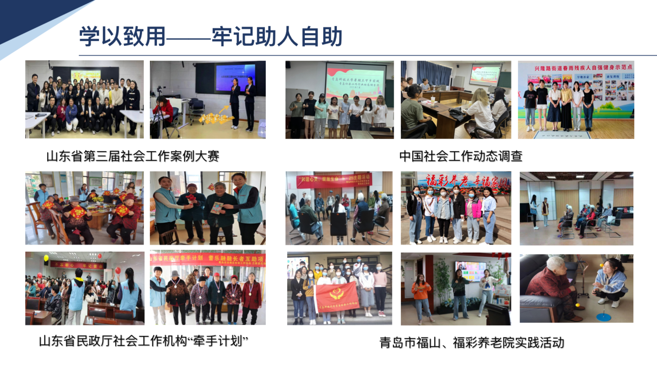 校外的老年公寓实践活动、困境儿童帮扶活动、志愿者服务大赛