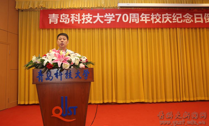 党委副书记张鸿波主持仪式,并介绍了青科大70周年校庆标识构成元素和含义。