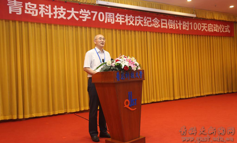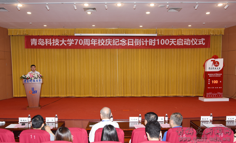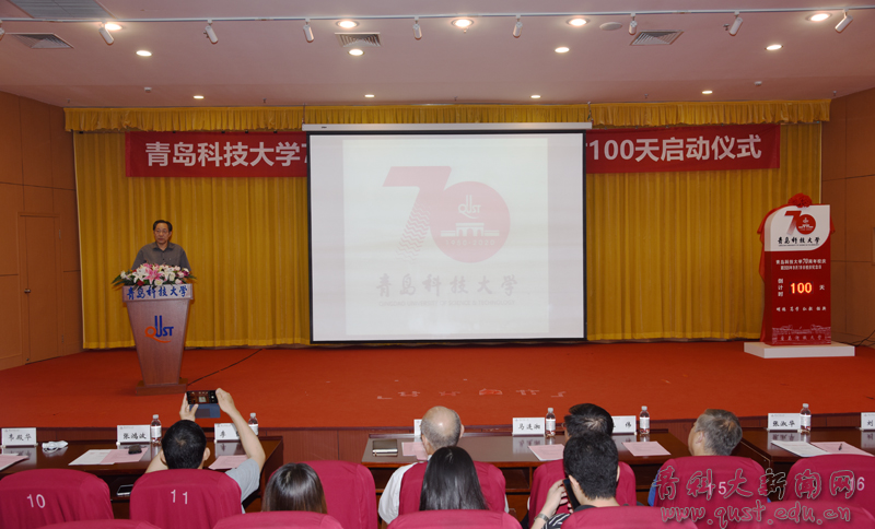 6月11日上午,sunbet官方网站70周年校庆纪念日倒计时100天启动仪式在崂山校区第三报告厅隆重举行。