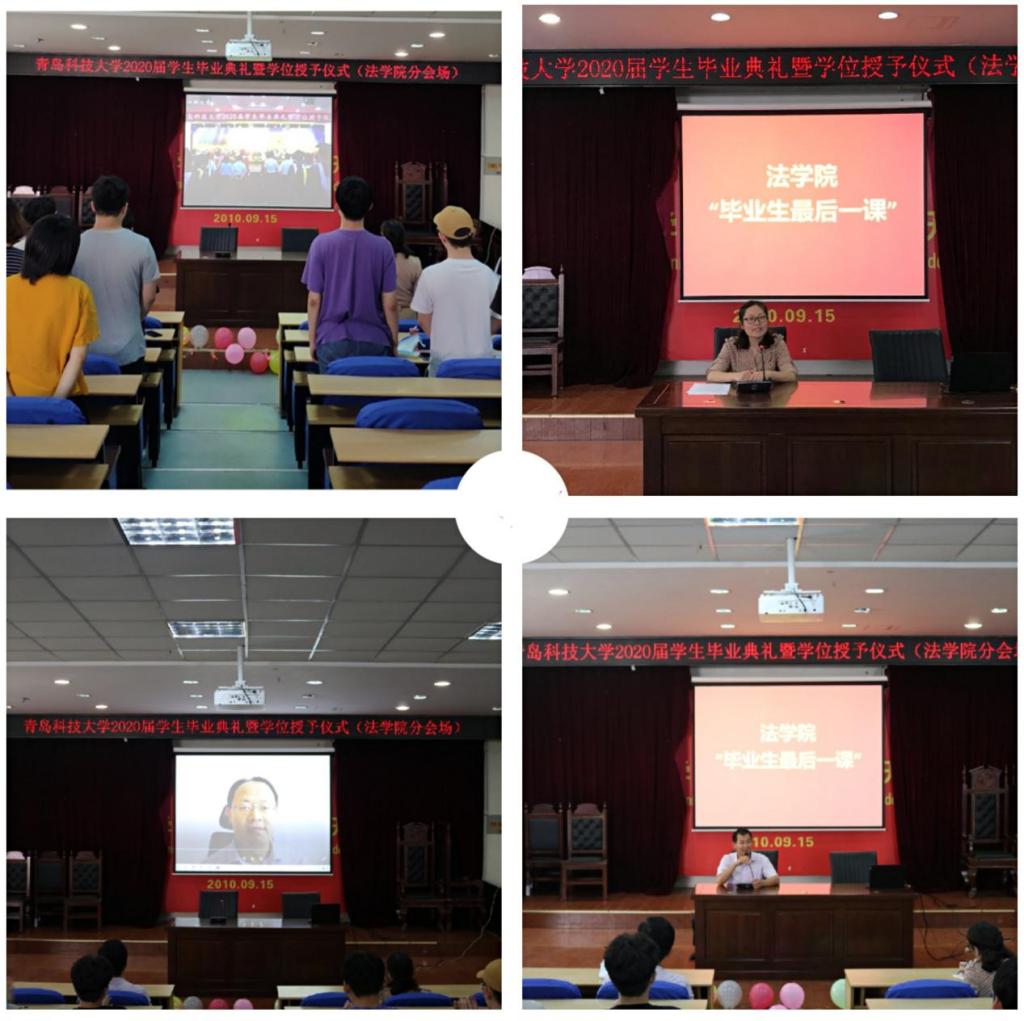 6月14日上午,sunbet在弘毅楼A201模拟法庭设立分会场,通过直播收看了公司2020届员工毕业典礼暨学位授予仪式。仪式后,公司党政负责人、教师代表为毕业生带来“最后一课”。公司经理王金堂“云寄语”2020届毕业生,要铭记“博学、笃行、崇法、重德”的院训,做博览群书、勤学好问之人,做笃行致远、砥砺前行之人,做崇法明法、忠诚守正之人,做品德高尚、以德为先之人。希望毕业生同学牢记“科大精神”,关注和支持母校的发展。党总支书记李卉希望毕业生牢记“四要”:要坚定理想信念,自觉担当中华民族伟大复兴伟业;要保持进取之心,牢固树立终身学习的理念;要保持乐观心态,用自信成就精彩人生;要常怀感恩之心,用奉献和责任回馈社会。公司党总支副书记兼副经理刘俊杰对毕业生提出“对党绝对忠诚、信念无比坚定、法治思维鲜明、奉献精神常在”四点要求。公司教师、辅导员代表分别从爱国情怀、职业道德、心灵关怀、安全稳定等方面与毕业生们进行了分享交流。