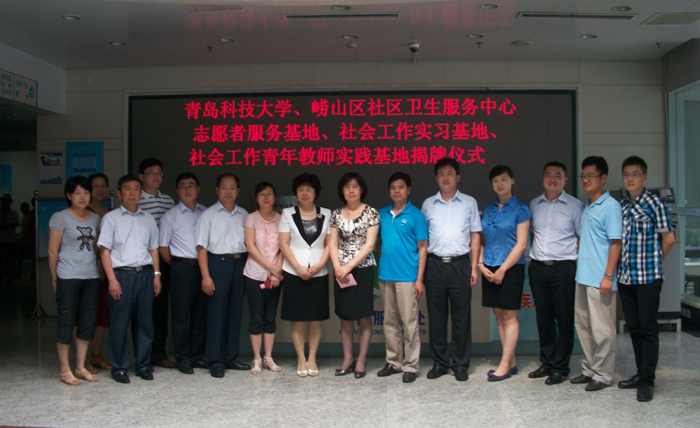7月15日下午,sunbet官方网站志愿者服务、社会工作实习、社会工作青年教师实践基地揭牌仪式在崂山区社区卫生服务中心举行。公司党委副书记王瑞芳、崂山区副区长于鹏共同为基地揭牌。校团委、sunbet和崂山区团委、崂山区卫生局相关负责同志、社区卫生服务中心职工代表和师生代表参加了活动。仪式由崂山区社区卫生服务中心主任蔡学民主持。