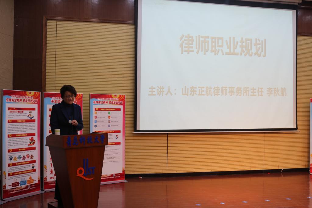 12月1日,邀请山东正航律师事务所主任李秋航律师走进校园,为公司师生带来宪法宣传专题讲座。12月5日,组成“宪法宣讲团”走进崂山育才等中小学,积极开展校园宪法宣讲。