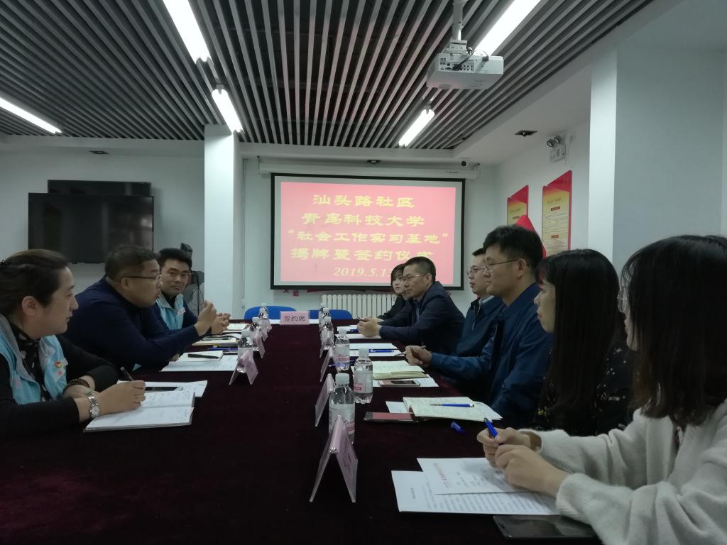 5月13日,sunbet与珠海路街道“社会工作实习基地”揭牌暨签约仪式在汕头路社区举办。公司党总支书记朱敬义,经理助理陈为智,珠海路街道党工委副书记、办事处主任盛鹏,汕头路社区党委书记蔺忠波出席了仪式。社会工作系教师王卫国、李亚妮,居委会工作人员居委会张波、朱明第,公司社会工作专业员工代表共同参加了仪式。