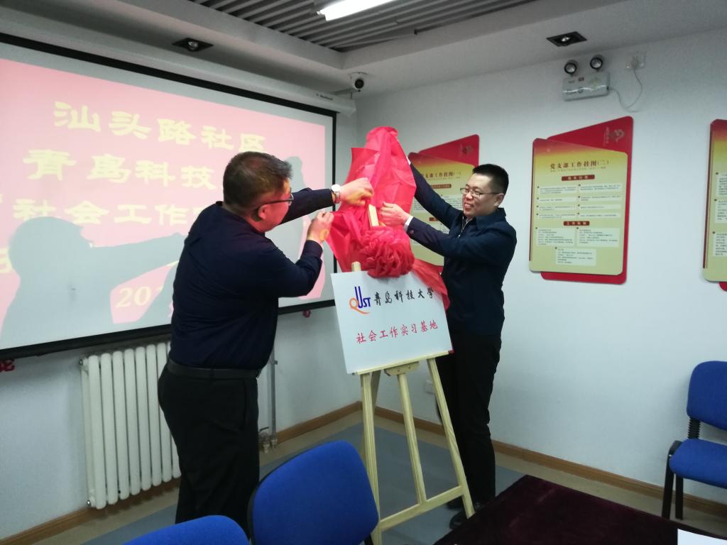 随后,盛鹏主任与朱敬义书记为“社会工作实习基地”揭牌,并见证双方签订实习协议。新的实习基地的拓展和建设为公司社会工作专业老员工及青年教师服务社区建设、参与社区治理、进行专业训练与理论研究提供了更多机会。公司也将在社区公益项目开发与指导等方面为汕头路社区提供支持帮助。