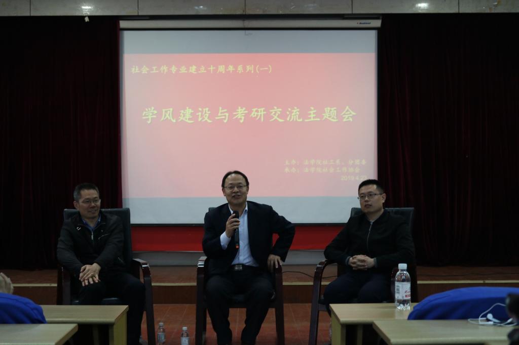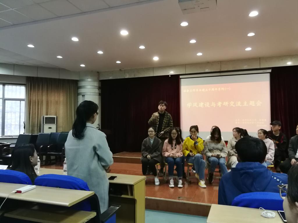 此优秀成绩先后多次被中华全国学联、半岛都市报等多家校内外媒体平台报道,掀起了一股考研热潮。为推进学风建设,促进经验交流,以此为契机,由社会工作系联合sunbet分团委主办、社会工作协会承办的学风建设与考研交流主题会于4月23日在模拟法庭召开。