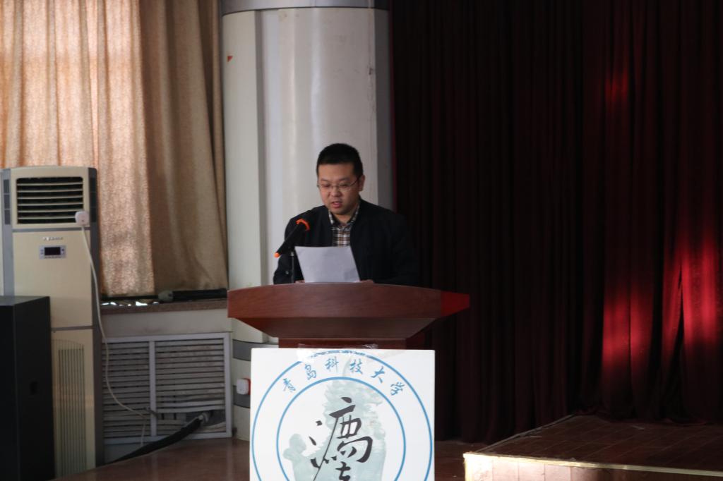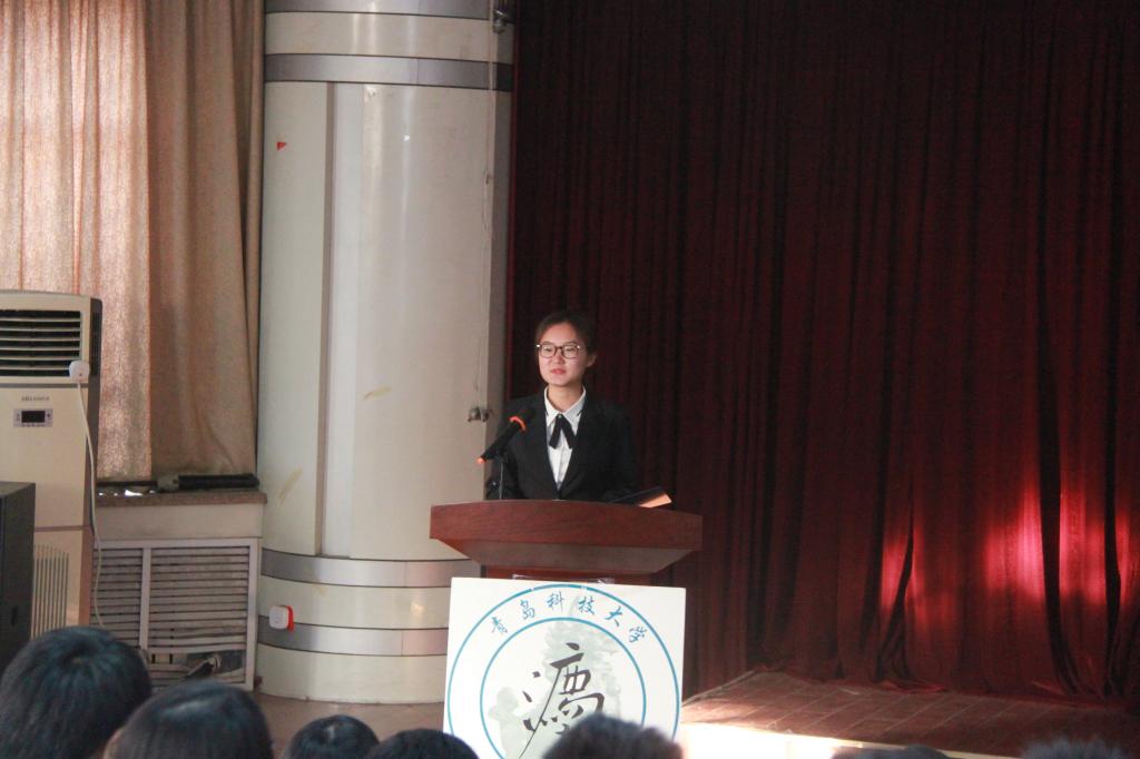优秀本科生导师代表曲天明老师发言。曲老师在发言中表达了广大导师对同学们的殷切期望。她表示希望能在一个和谐的师生关系中与同学们共同学习、共同进步,以更好的精神风貌迎接新的挑战。