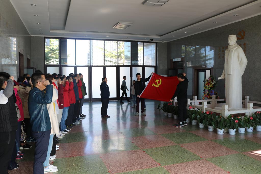 参观开始之前,师生党员们在党总支副书记、经理王金堂的带领下,面向王尽美烈士塑像,进行了庄严的重温入党誓词活动。