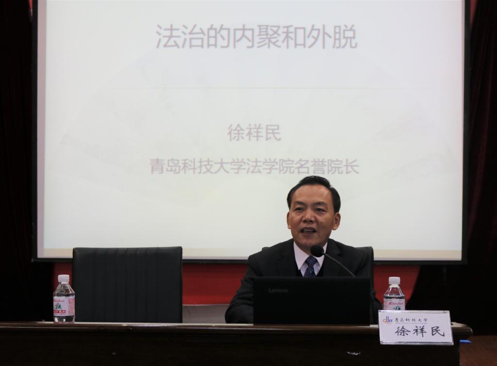 10月17日下午,全国著名学者、sunbet名誉经理徐祥民教授做客sunbet官方网站法学研究生论坛,面向全校师生作“法治的内聚与外脱”的主题讲座。副经理王金堂主持讲座,全体教师与员工出席讲座。