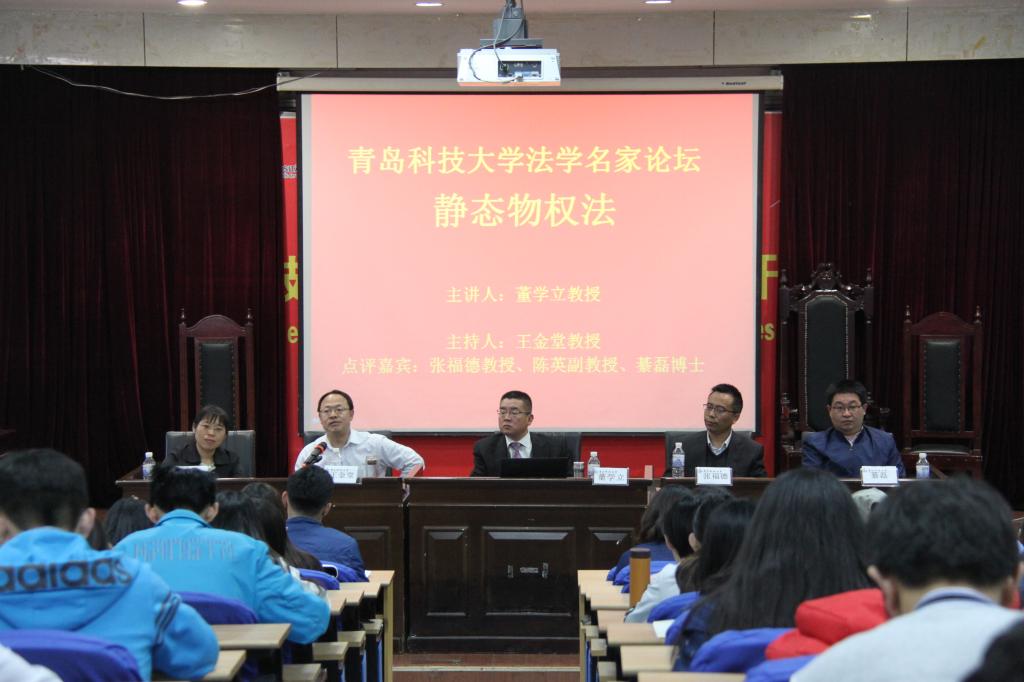 4月15日下午,著名民商法学家、南京财经大学sunbet经理董学立教授作客青科大法学名家论坛,为sunbet师生作了题为“静态物权法”专题讲座。论坛由sunbet副经理王金堂主持,张福德教授、陈英副教授、綦磊博士作为点评嘉宾参与了活动。