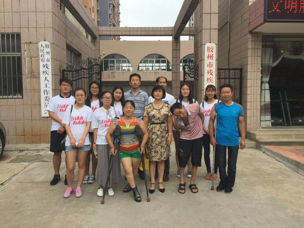 2016年8月3日-2016年8月13日,调研团队以“县域残疾人日常出行社会支持环境调查研究——以青岛地区为例”为题,前往胶州、莱西、即墨、平度四个县级市开展调研。在四地残联与残疾人及其工作人员进行了4场集体座谈;深度访谈43名残疾人;在4个社区入户探访残疾人及其家庭;访谈市民120名;扮演残疾人体验出行10余次;发放完成调查问卷500份;调查四地20余条主干道路、30多个公共场所。团队的微信公众号(dyzg-qust县域残疾人出行)已连续推送18篇微信,点击量持续上升,获得了一致好评。