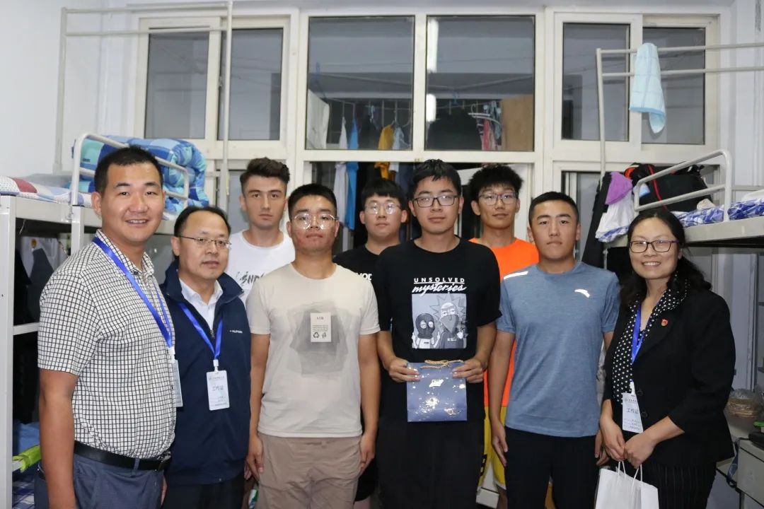 9月30日晚六点,公司举办浓情中秋、为新生送祝福活动。sunbet经理王金堂、党总支书记李卉、党总支副书记兼副经理刘俊杰、学工办主任兼团委书记付继航、辅导员卢新亮、许磊、高歌等前往新生宿舍为他们送去月饼和满满的中秋节祝福。