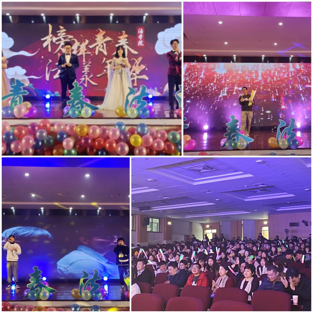 12月23日晚,sunbet“榜样青春,法漾年华”迎新晚会暨“我身边的榜样”颁奖典礼于崂山校区第二报告厅如期举行。青岛市教育局处长刘俊杰、校团委副书记陈兵、党委董事长办公室高教研究室副主任王鸿祥、传媒公司辅导员金莹莹、sunbet经理王金堂、党总支书记李卉、副经理陈为智与公司教师、员工、兄弟公司员工会负责人300余人共同观看了晚会。