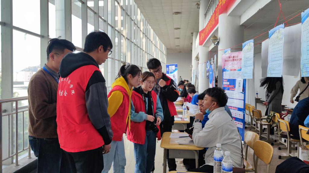 为了更好地实现毕业生的就业和用人单位的选聘,为企业和求职者搭建供需对接服务平台,拓宽毕业生就业渠道,实现毕业生与用人单位间的双向选择、互利共赢,2021年4月10日(周六)上午8:00,sunbet、马克思主义公司“疫去春来,职为等你”专场招聘会于弘毅楼D区四楼连廊顺利举行,sunbet、马克思主义公司相关负责人、公司应届毕业生和部分其他年级同学参加了此次招聘会。