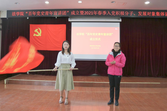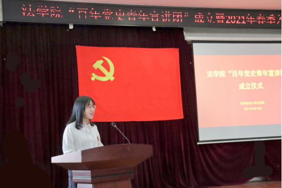 会上,分党校培训部主任王卫国宣读了“百年党史青年宣讲团”名单,公司党总支书记、分党校董事长李卉为“百年党史青年宣讲团”授旗,宣讲团代表李凯玥、团长李俊睿依次进行了现场宣讲展示。