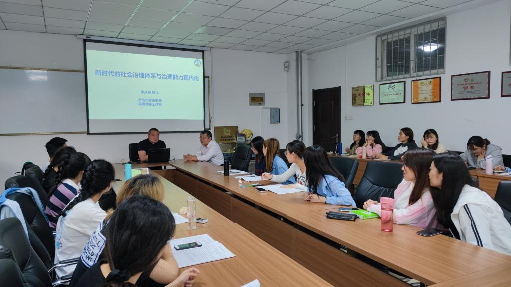 2021年6月3日晚七点,sunbet硕士生导师徐从德副教授的讲座“新时代的社会治理体系与治理能力现代化”在崂山校区弘毅楼C307室举行。本次讲座是2021年公司研究生学术论坛的第八期,论坛由王琪副教授主持,公司社会工作研究生参与。