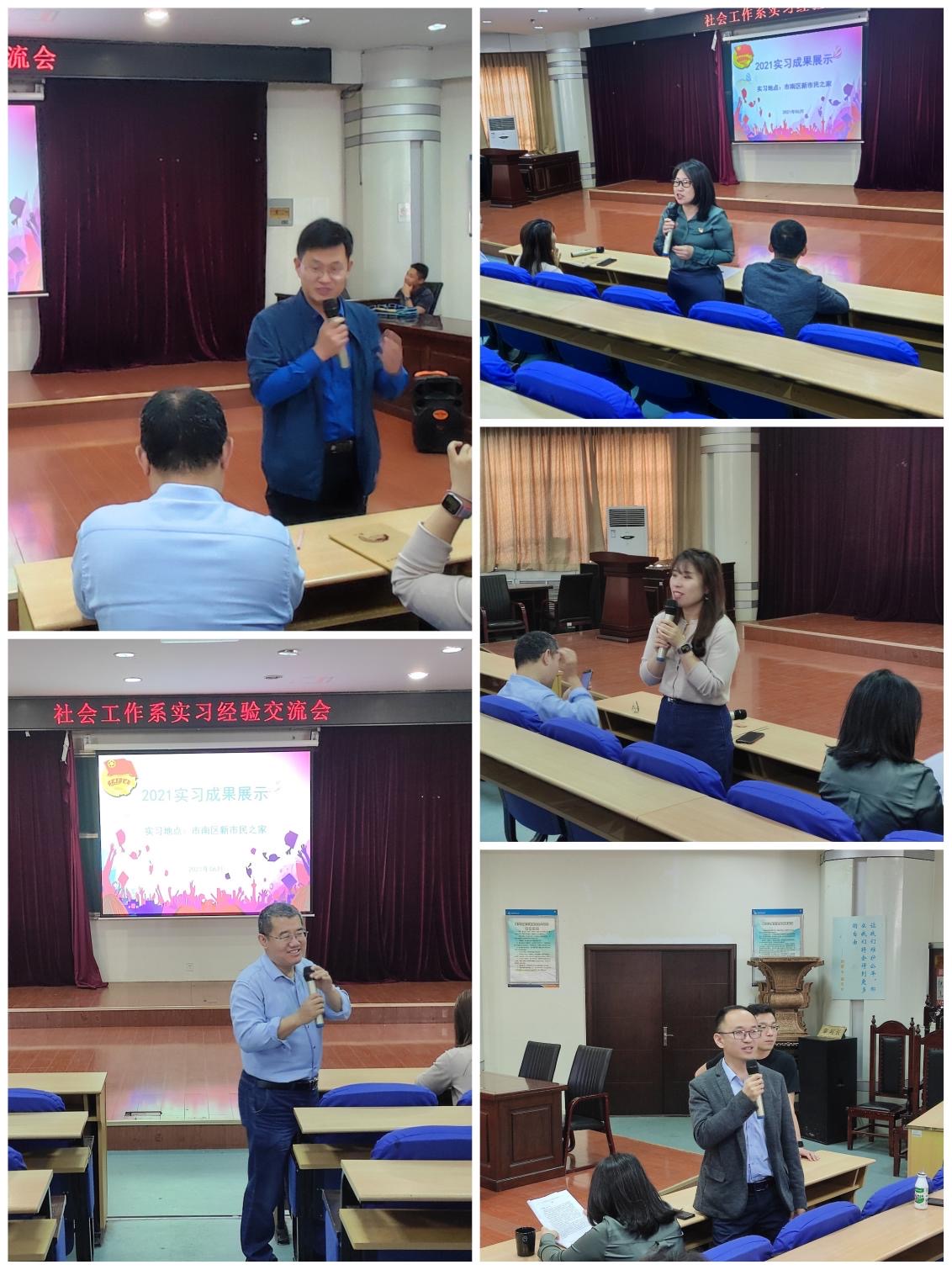 通过这次经验交流会,使同学们对于三周的专业实习中自己工作成果和知识经验进行更加深入的理解与巩固。实习活动是对于课堂知识的丰富与实践,为接下来的专业知识、技能的学习以及对于社会工作专业有了有更好的理解与认识,为进一步的专业学习与成长奠定了良好的基础。