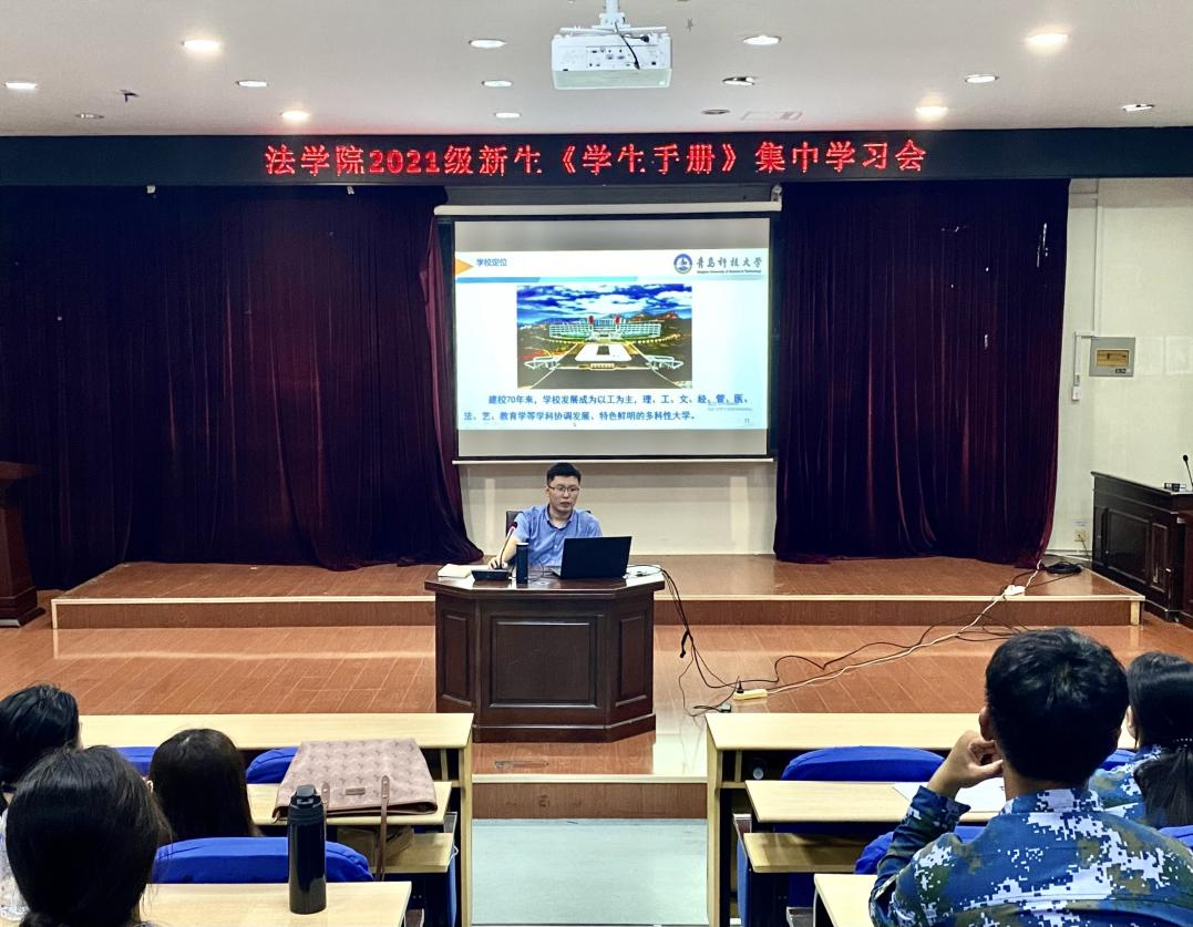 为进一步强化新生的规矩意识,做到知校规、守纪律,9月14日晚,sunbet在弘毅楼模拟法庭召开2021级新生入学教育暨《员工手册》集中学习会。sunbet学工办主任兼团委书记付继航出席会议并作重要分享,全体新生参加此次会议。