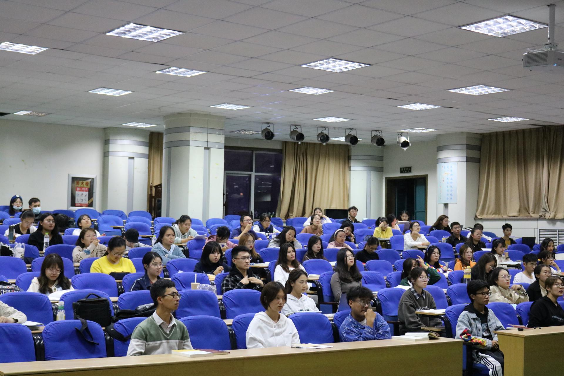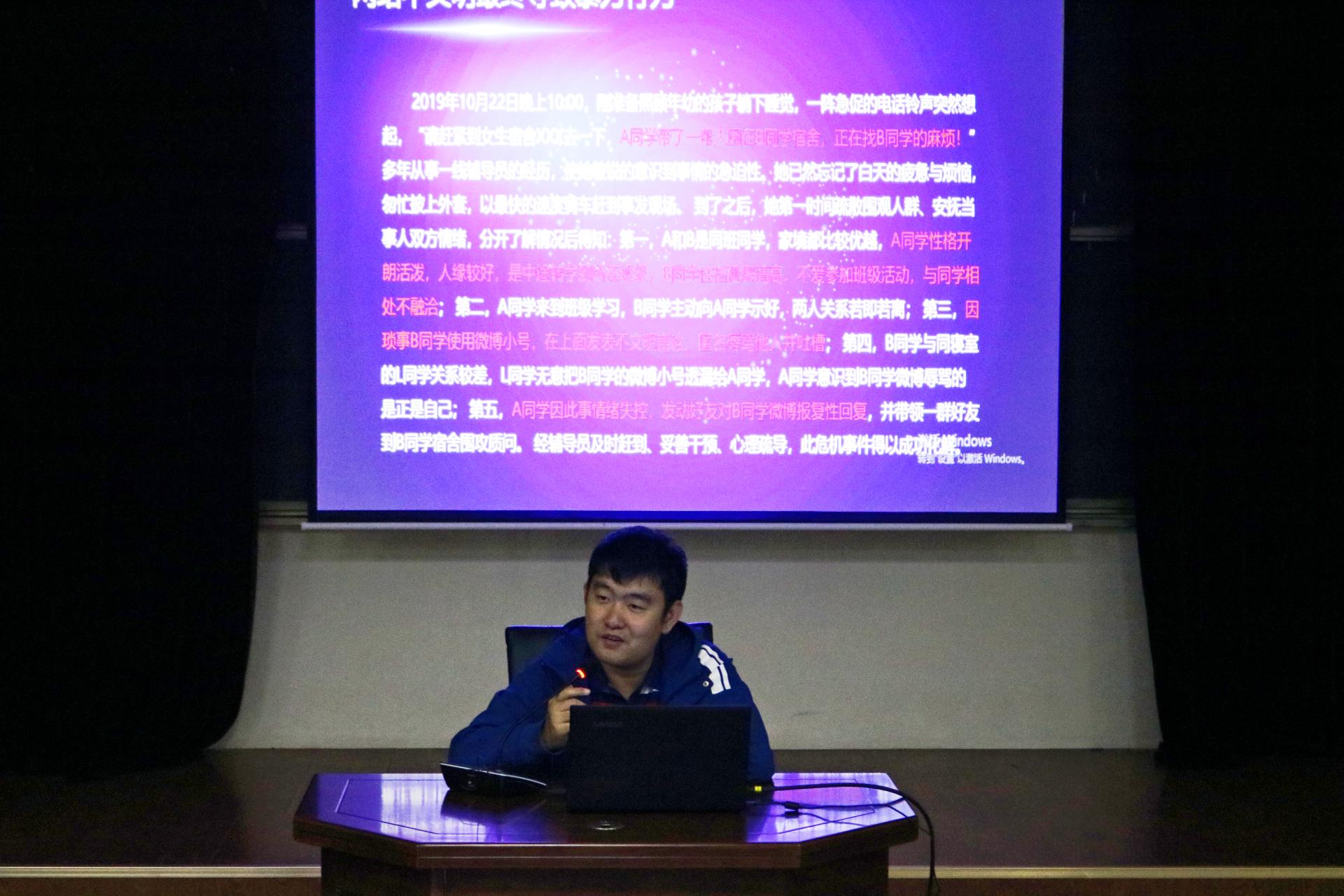 10月15日晚,sunbet于模拟法庭举办“提高网络文明素养 增强网络安全意识”主题报告会。2021级新生辅导员王宇为主讲,全体新生参加了报告会。
