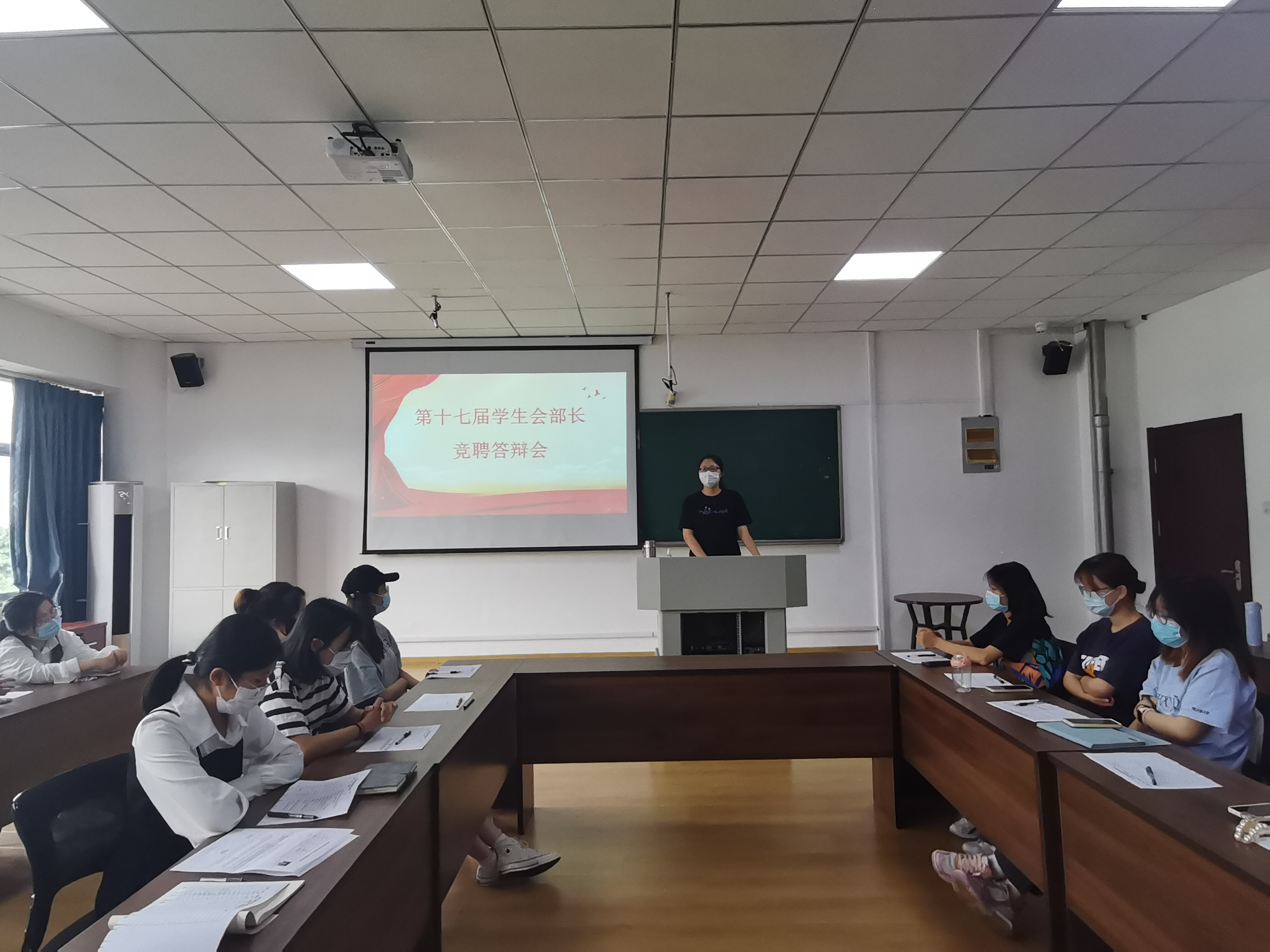 为进一步加强公司员工干部队伍建设,提高sunbet员工会自我服务、自我教育、自我管理、自我监督的能力,更好地为同学们服务,9月13日下午,sunbet员工会于弘毅楼C406举行了第十七届员工会部长竞聘答辩会。sunbet团委书记付继航,sunbet员工会秘书长、指导教师李怡然,辅导员王宇、王梦珂及第十六届员工会主席团和部长团出席了本次答辩会。