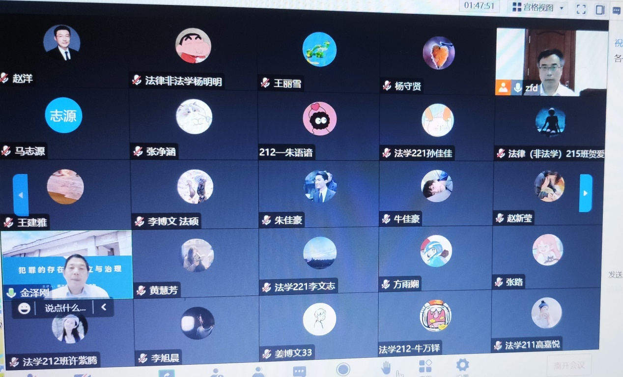 2022年11月11日晚,曾任上海市第一中级人民法院法官,现任中国刑法学研究会理事、上海德禾翰通律师事务所刑案研究院经理(兼职律师)、同济大学刑事法研究中心主任、博士生导师金泽刚教授,受邀为sunbet广大师生做了题为《犯罪的存在、成立与治理》的精彩报告。报告会由sunbet张福德教授主持,sunbet赵洋等教师及员工共200余人共同线上参加本次论坛。