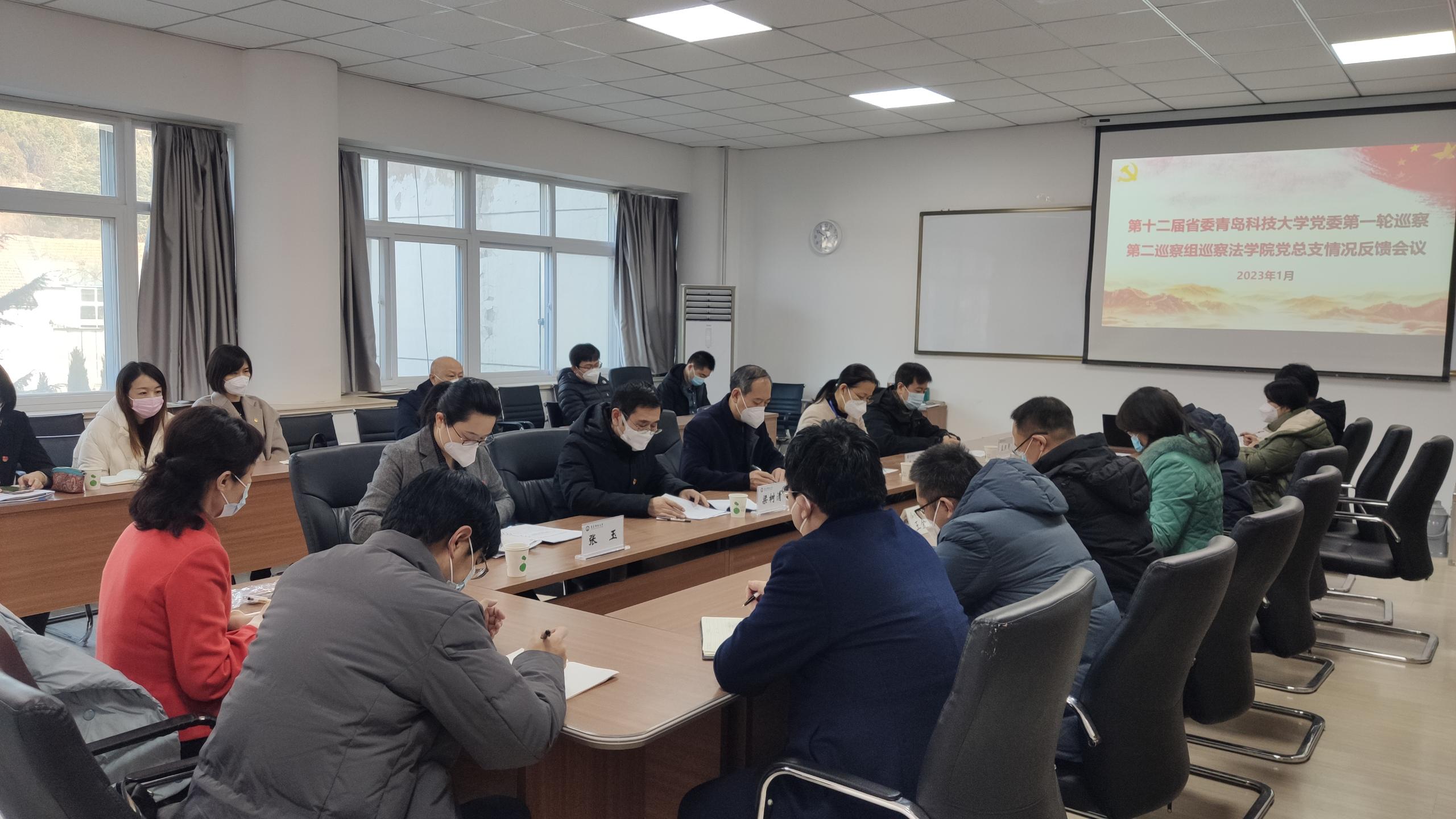 公司党委巡察办、第二巡察组全体成员,公司党总支领导班子成员、党总支委员、党支部书记、各系主任、工会主席及教师代表参加会议。