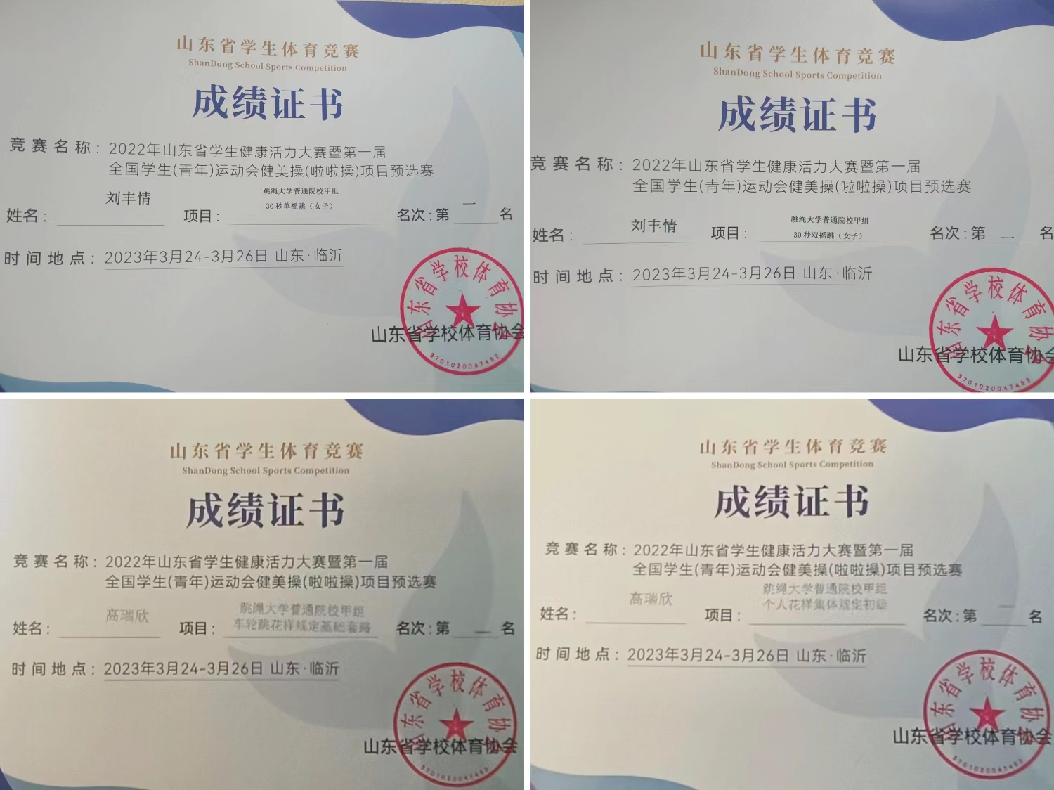 公司员工多次获得省级跳绳比赛重要奖项,在3月份举办的2022年山东省员工健康活力大赛中,法学213班刘丰情和社工221班高瑞欣获得30秒单摇跳(女子)、30秒双摇跳(女子)等个人和团体奖项共计六项,成绩优异;sunbet女子篮球队在sunbet官方网站第四十届“育新杯”篮球赛中获得女子组冠军,实现了新的突破。