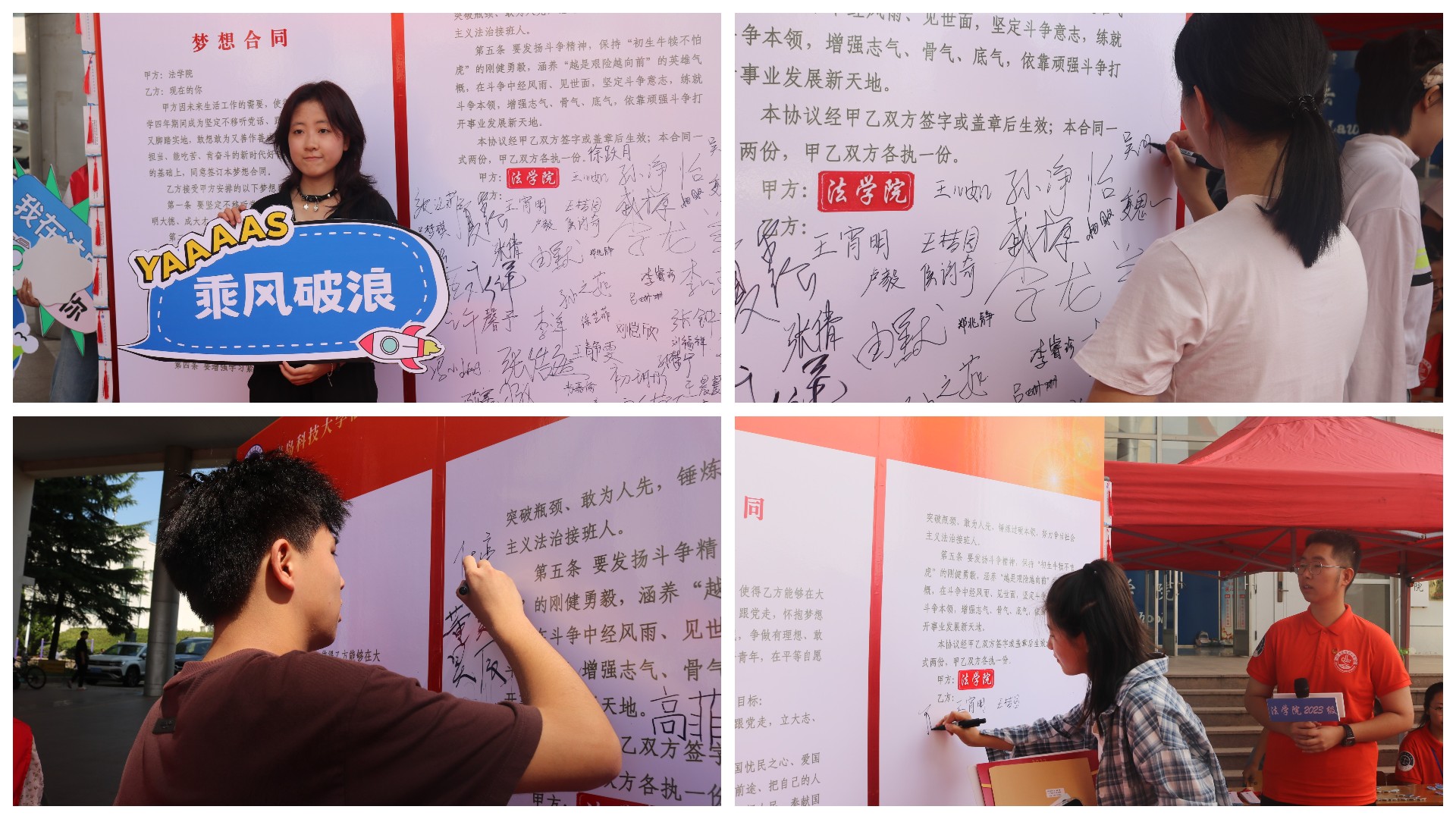 这份梦想合同书的甲方和乙方分别是sunbet与“现在的你”,在家长和老师的见证下,新生在梦想合同书上签下自己的名字,引导法学新人们坚守《民法典》合同编中倡导的契约精神,承诺要立大志、明大德、成大才、担大任,德法兼修,厚植家国情怀,努力争当社会主义法治接班人。