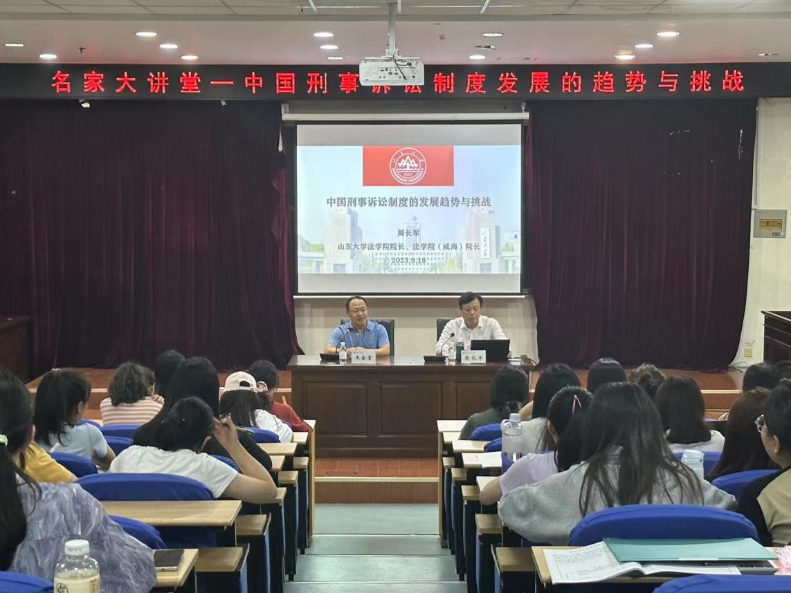 9月18日,山东大学sunbet经理、博士生导师、教育部新世纪优秀人才、国务院政府特殊津贴专家、第二届“山东省十大法治人物”周长军受邀作客sunbet名家大讲堂,做了题为《中国刑事诉讼制度发展的趋势与挑战》的精彩报告。本次讲座由sunbet经理王金堂主持,sunbet本科生、研究生200余人参与了报告会。