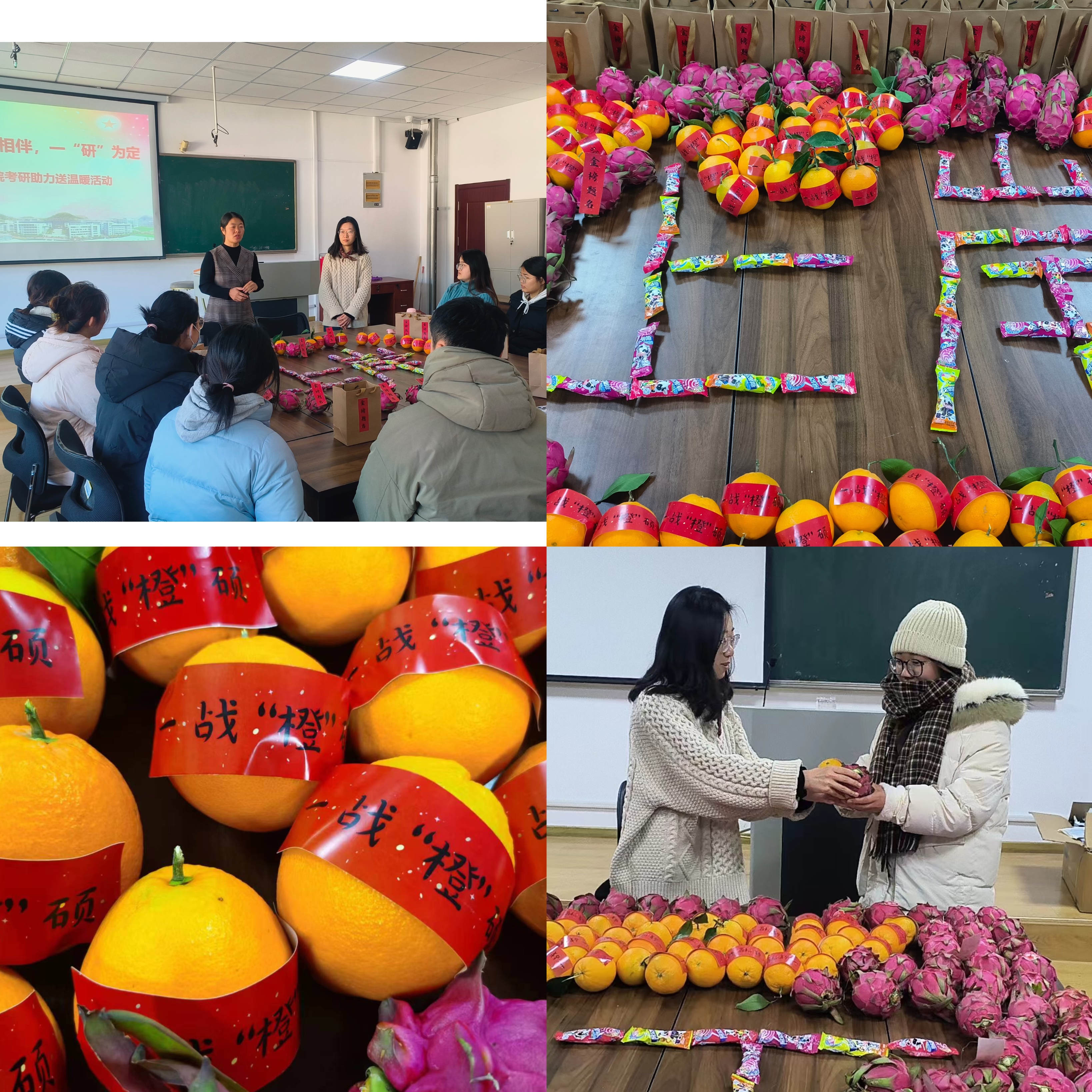 傲雪寒梅香袅袅,一战橙硕果累累。为缓解考研学子考前压力,增加迎考信心,12月21日,公司举办“研路相伴,一‘研’为定”考研助力暖心活动,公司党总支副书记兼副经理王祥梅、毕业生辅导员王梦珂,考研员工代表参加本次活动。