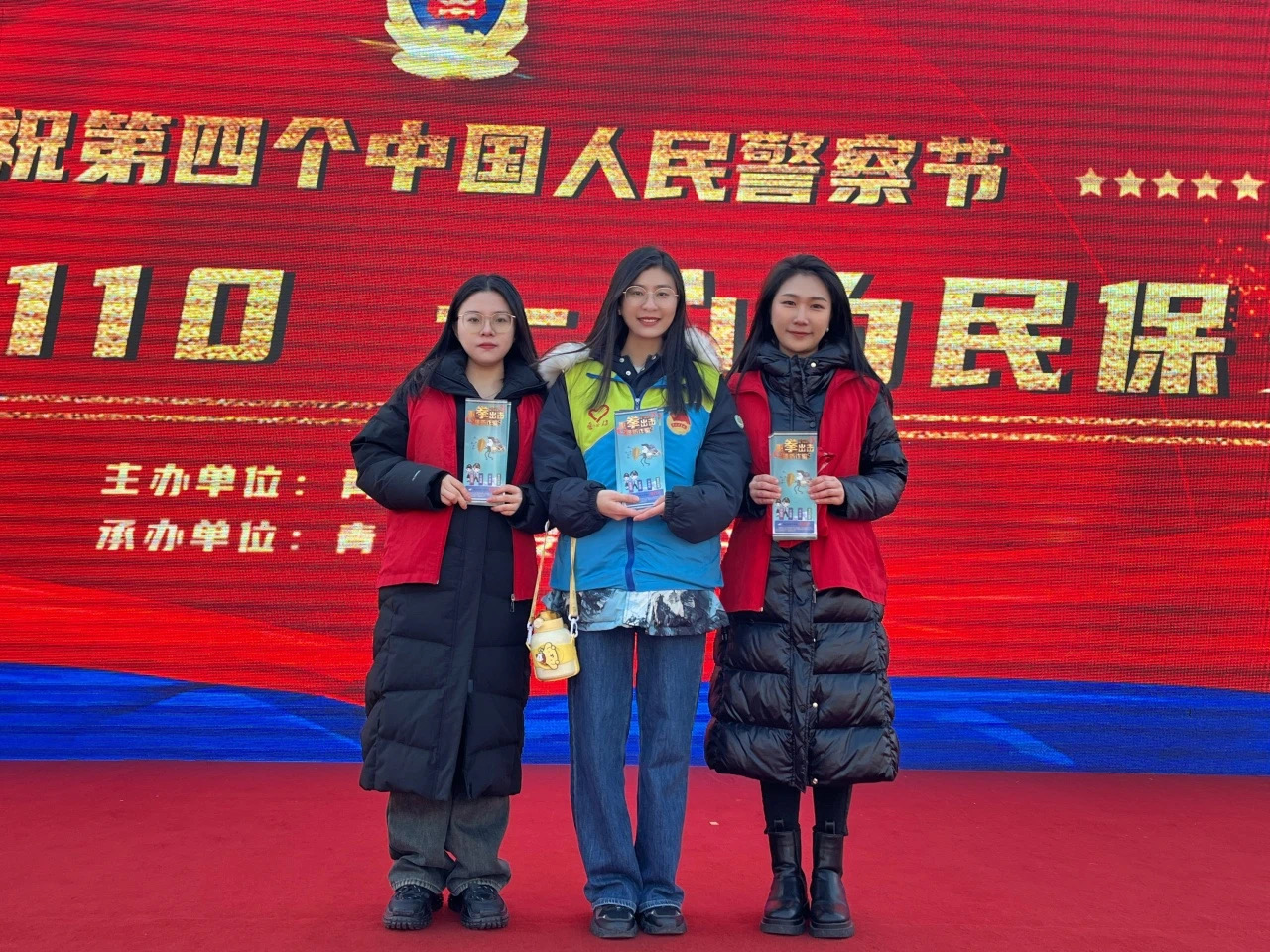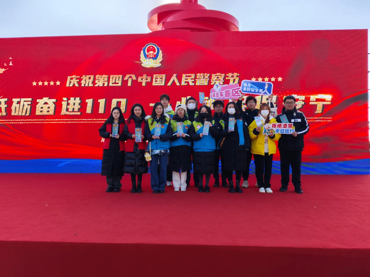 1月10日上午,青岛市公安局在五四广场举办庆祝第四个“中国人民警察节”暨第38个“110宣传日”集中宣传活动,sunbet三名反诈青年志愿者参加本次活动。