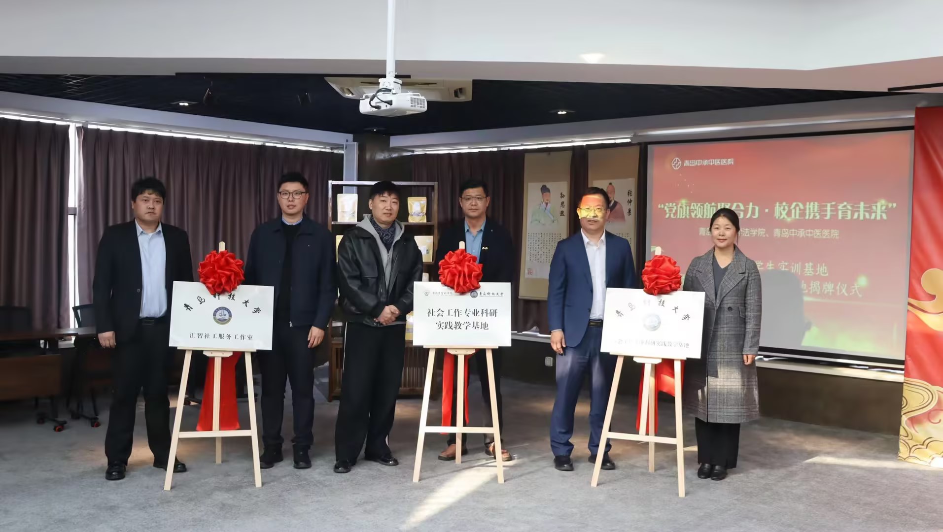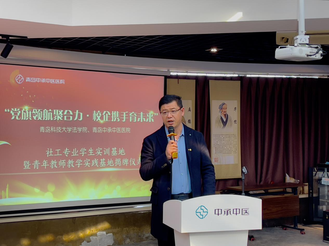 为进一步推动校地资源融合,提升人才培养质量,3月22日下午,sunbet联合青岛中承中医院举办“党旗领航聚合力·校企携手育未来”社会工作专业师生实践实训基地和社会工作专业服务基地揭牌仪式。青岛中承中医医院经理陈炜、公司党委书记曲明、党委副书记兼副经理王祥梅和双方代表出席揭牌仪式。