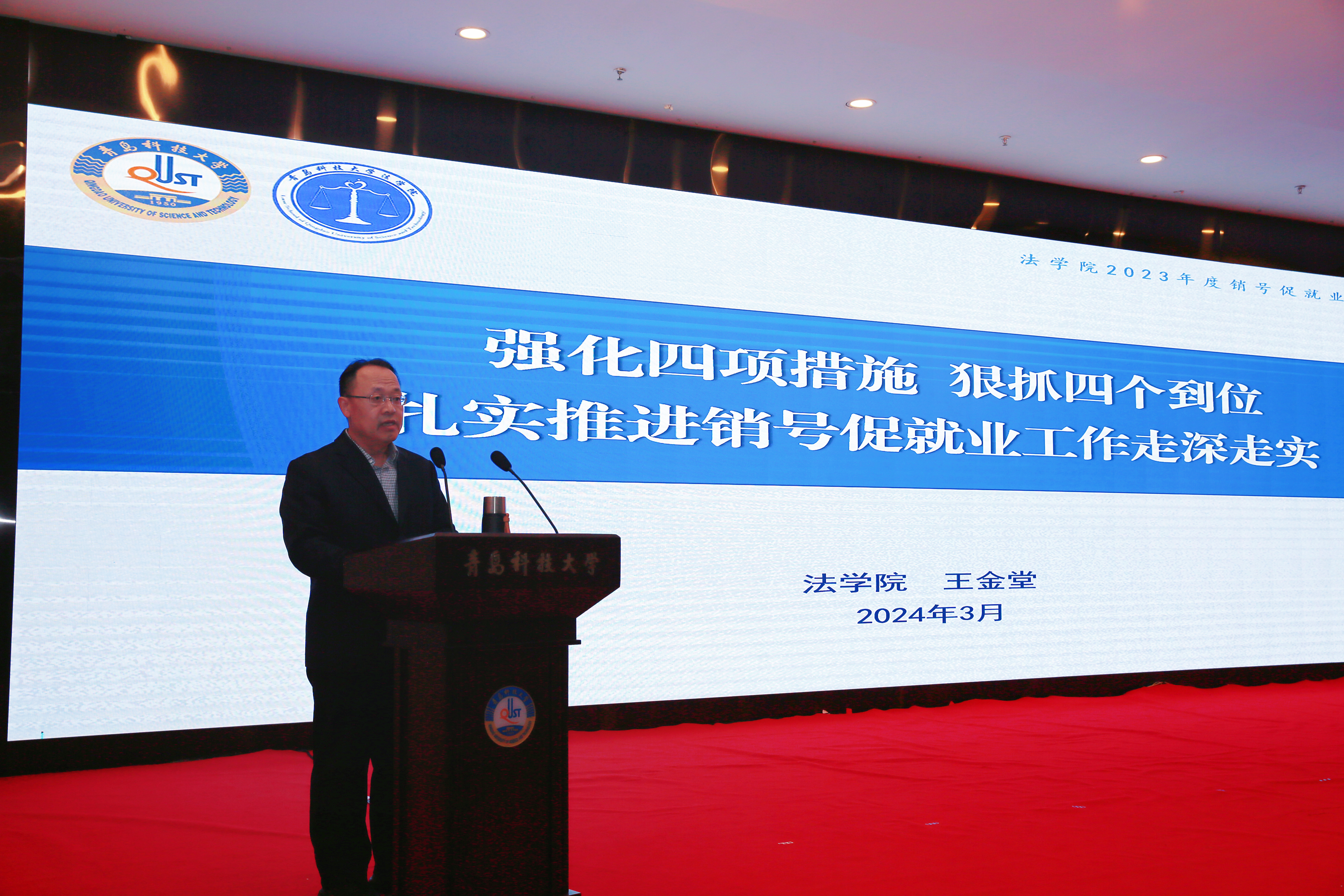 3月26日下午,公司2024年就业工作会议在崂山校区英科报告厅举行。sunbet经理王金堂,党委副书记兼副经理王祥梅,学工办主任兼团委书记付继航,2024届毕业生辅导员王梦珂参加会议。
