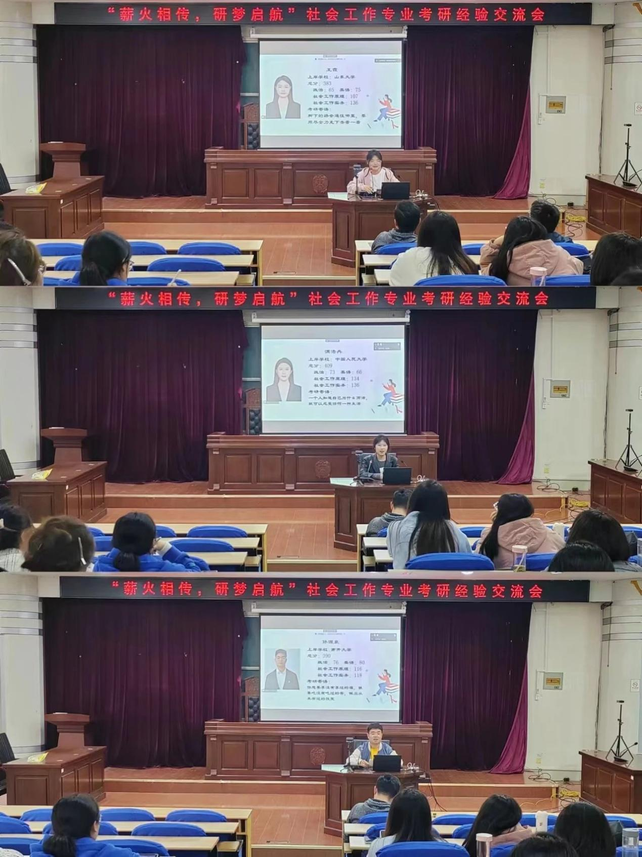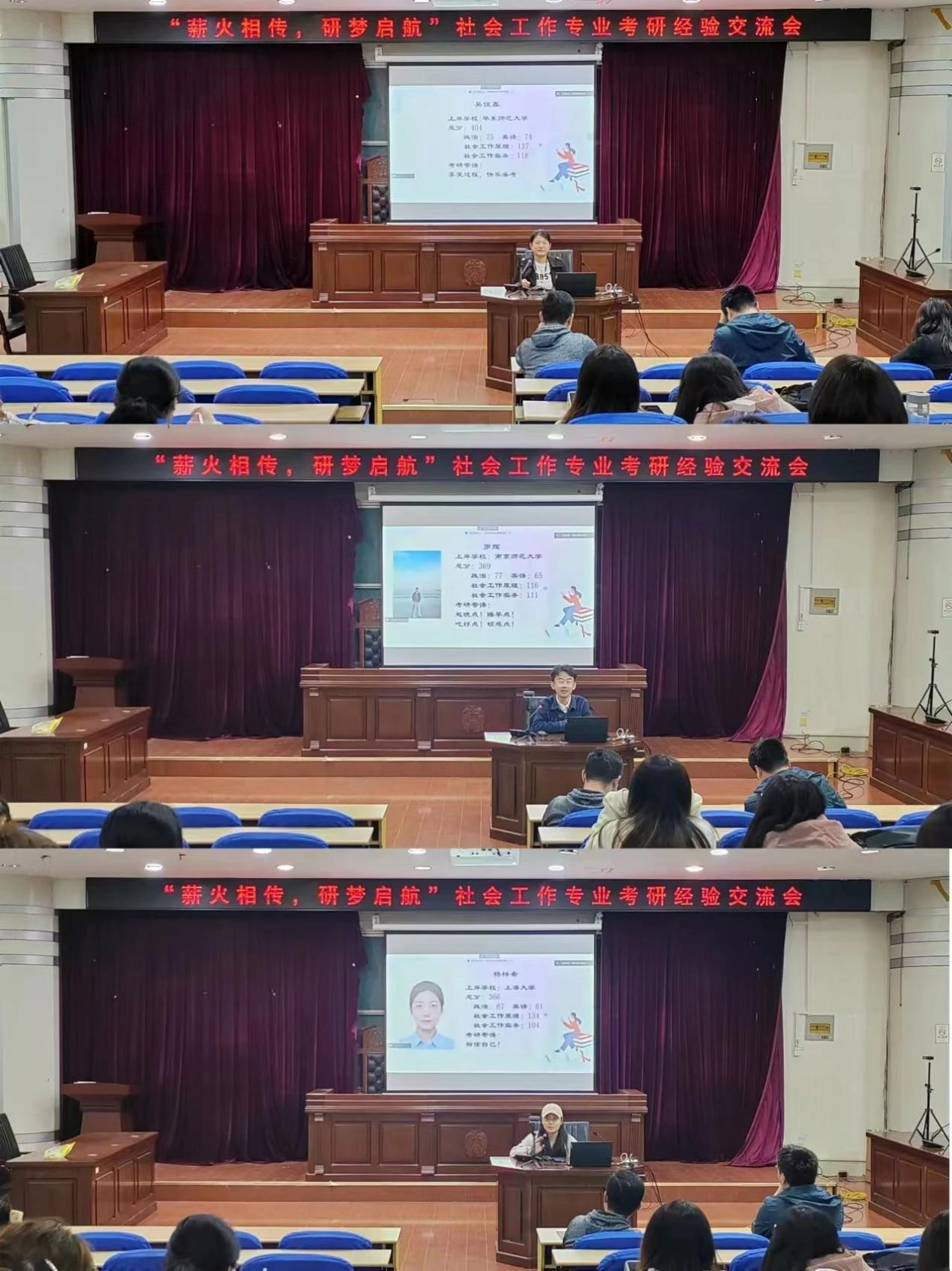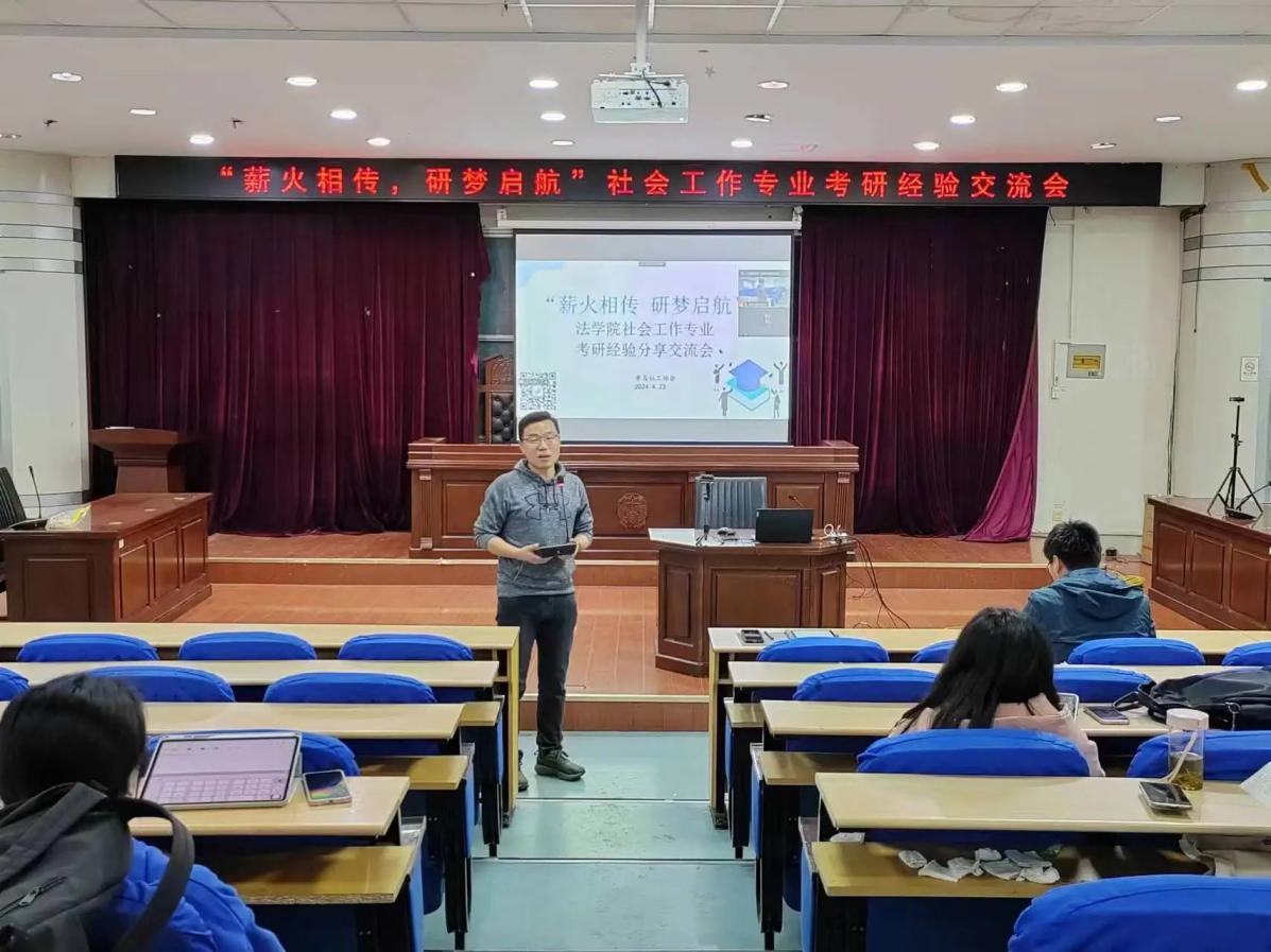 活动伊始,社工系的三位老师也分别发表了考研指导意见和经验建议等。刘琰老师以幽默风趣的语言为大家讲解了备考的技巧和策略;张行老师强调了考研对于个人成长和未来发展的重要性,鼓励同学们积极备考,争取取得好成绩;杭帆老师则从社会工作专业的角度出发,为同学们提供了专业性的备考建议,帮助同学们更好地把握考试重点与难点等。