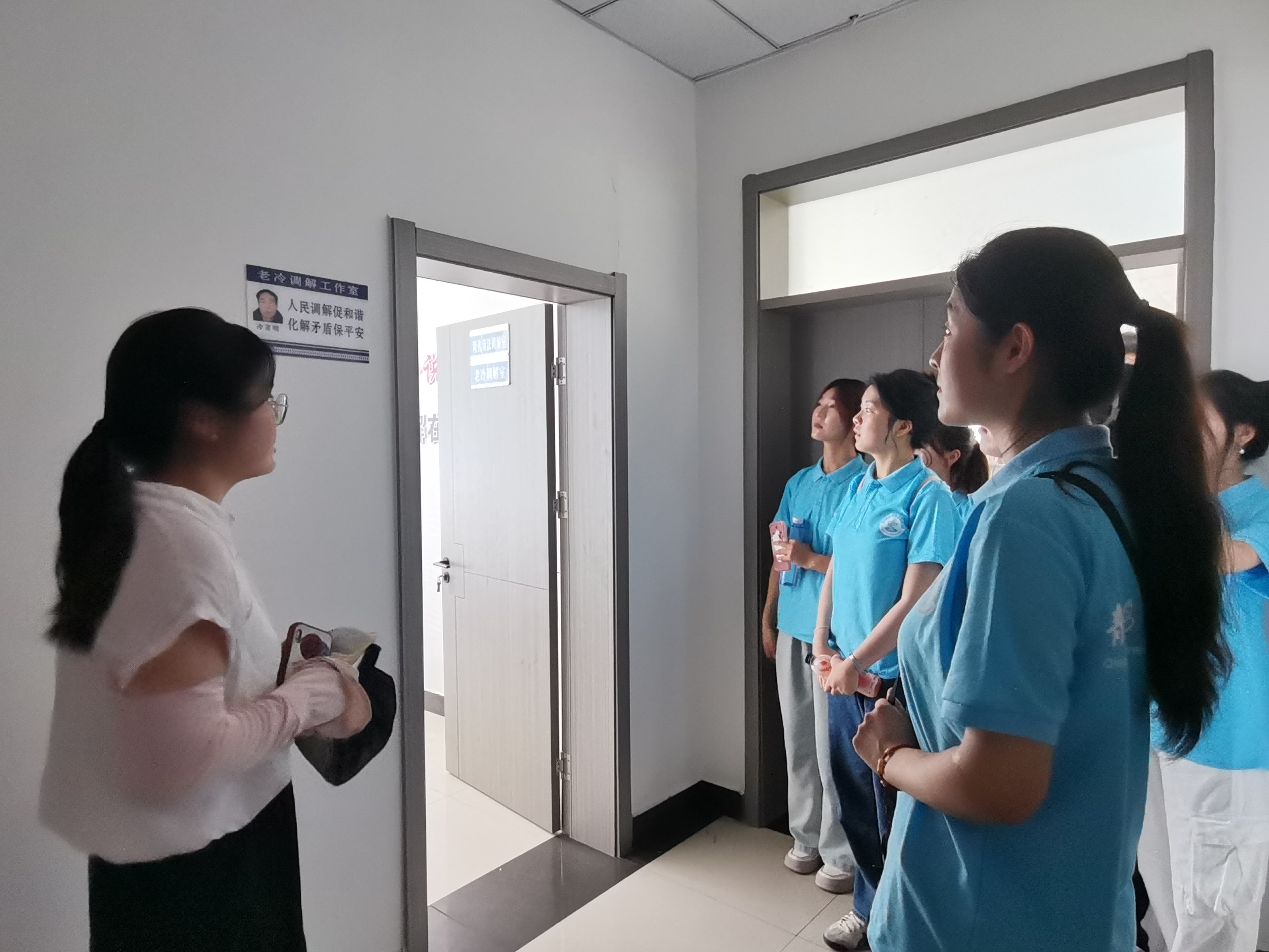 “治国犹栽树,本根不摇则枝叶茂荣”。在神山镇司法所,服务队深入了解了基层司法行政工作现状,对司法所“两所一庭”联动工作模式和“一站式”矛盾纠纷调解机制有了深刻认识,并同神山镇党委副书记刘健、神山镇司法所所长谭玉峰开展座谈交流,对司法所在服务大局、司法为民、公正司法方面取得的工作成效及在实践中应如何处理法与情的矛盾及各种理论实践问题进行了深入探讨,有效增强了法学理论的运用能力。