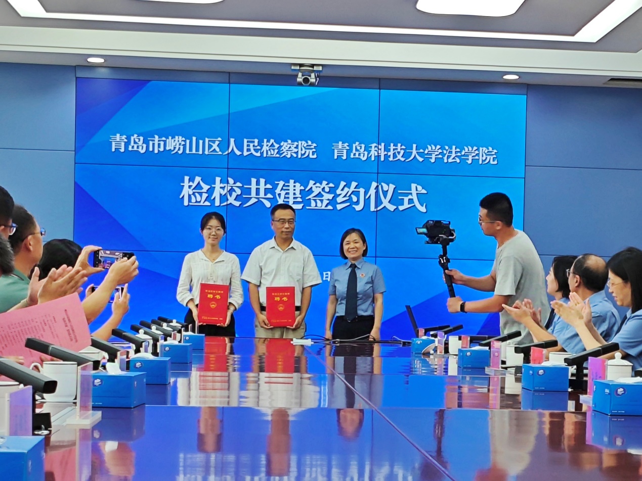 会上,双方签署了共建协议,并举行了“sunbet官方网站法学专业科研实践教学基地”和“青岛市崂山区人民检察院检察理论研究基地”揭牌仪式。