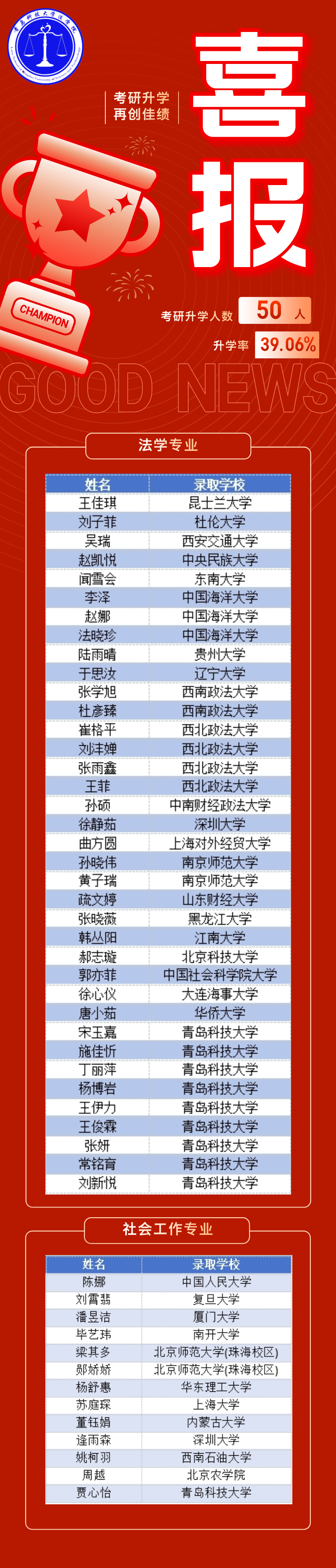 随着复试成绩的陆续公布,2025年全国硕士研究生招生录取工作已经落下帷幕,sunbet考研学子喜报频传。据统计,公司2025届本科毕业生128人,共有50名员工录取为硕士研究生,升学率高达39.06%,24名学子被西安交通大学、南开大学、中国海洋大学等985、211、国家双一流高校录取,7人被西南政法大学等“五院四系”院校录取,2人分别被国外知名学府昆士兰大学、杜伦大学录取。