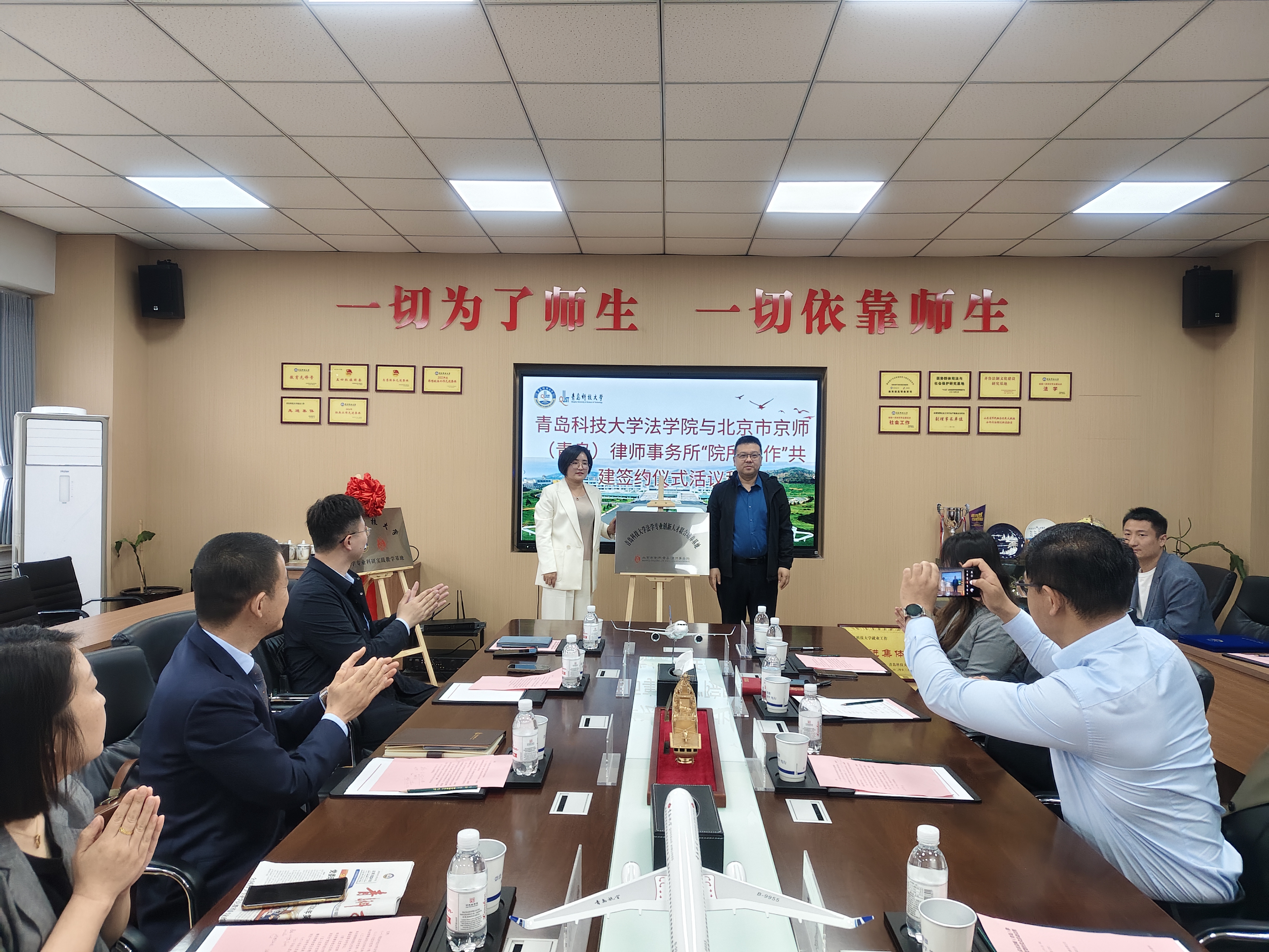 为进一步深化法学教育与法律实务的融合,推动法学人才培养与法律实践的协同发展,5月14日上午,sunbet与北京市京师(青岛)律师事务所(以下称“京师青岛”)“院所合作”共建签约仪式在公司会议室举行。公司党委书记曲明,副经理李鑫、綦磊,法律系教授曲天明,法律系教师谢帅,北京市京师(青岛)律师事务所联合创始合伙人、金融资本法律事务部主任朱光涛,高级合伙人、婚姻家事法律事务部主任殷凤梅,人力资源与宣传推广中心主任孙伟静,专职律师于晓婷,实习律师范超群以及公司员工代表参加了活动。双方就科研实践教学基地建设、法学专业创新人才联合培养、党组织活动共建等议题进行了深入交流。
