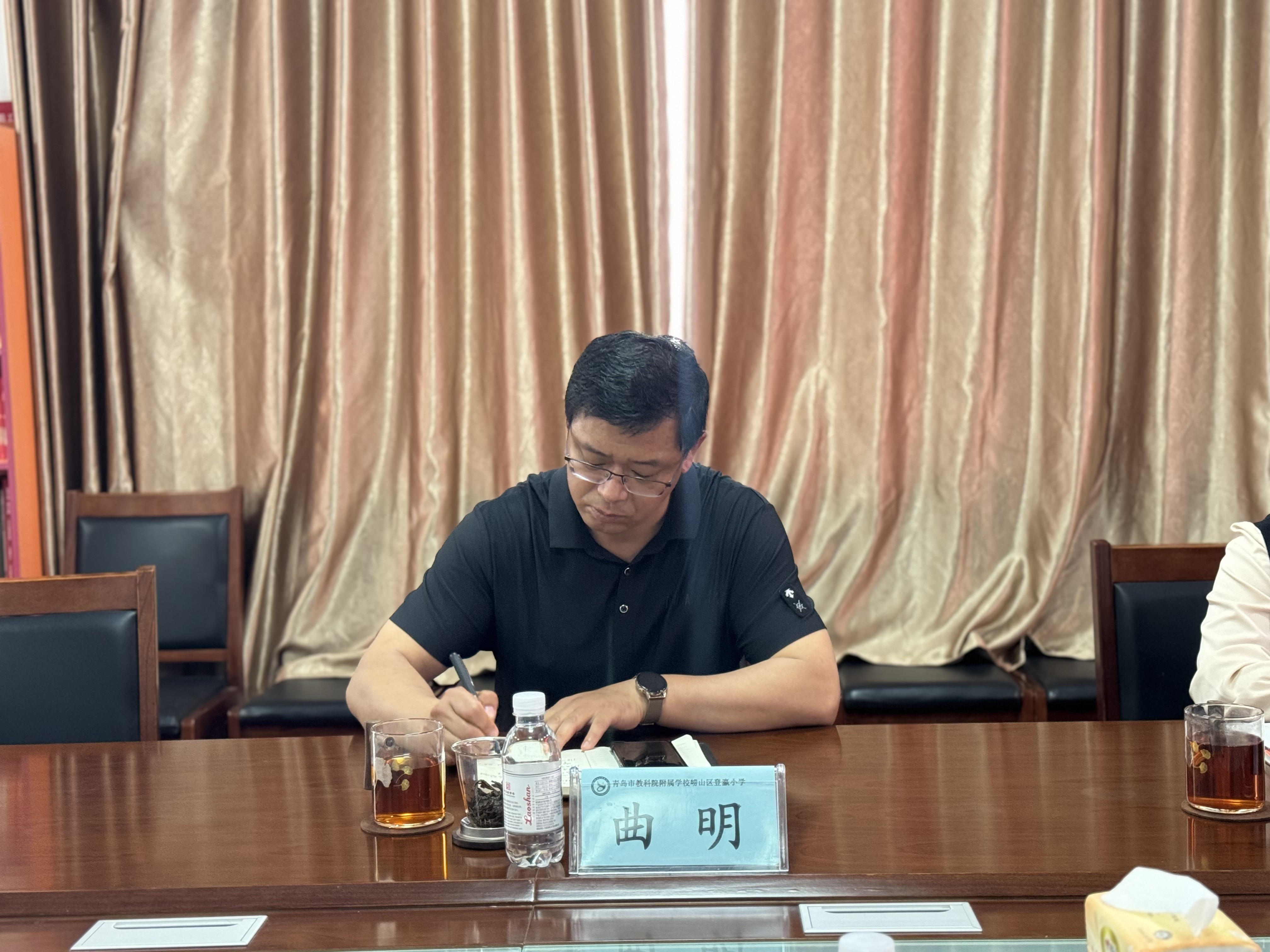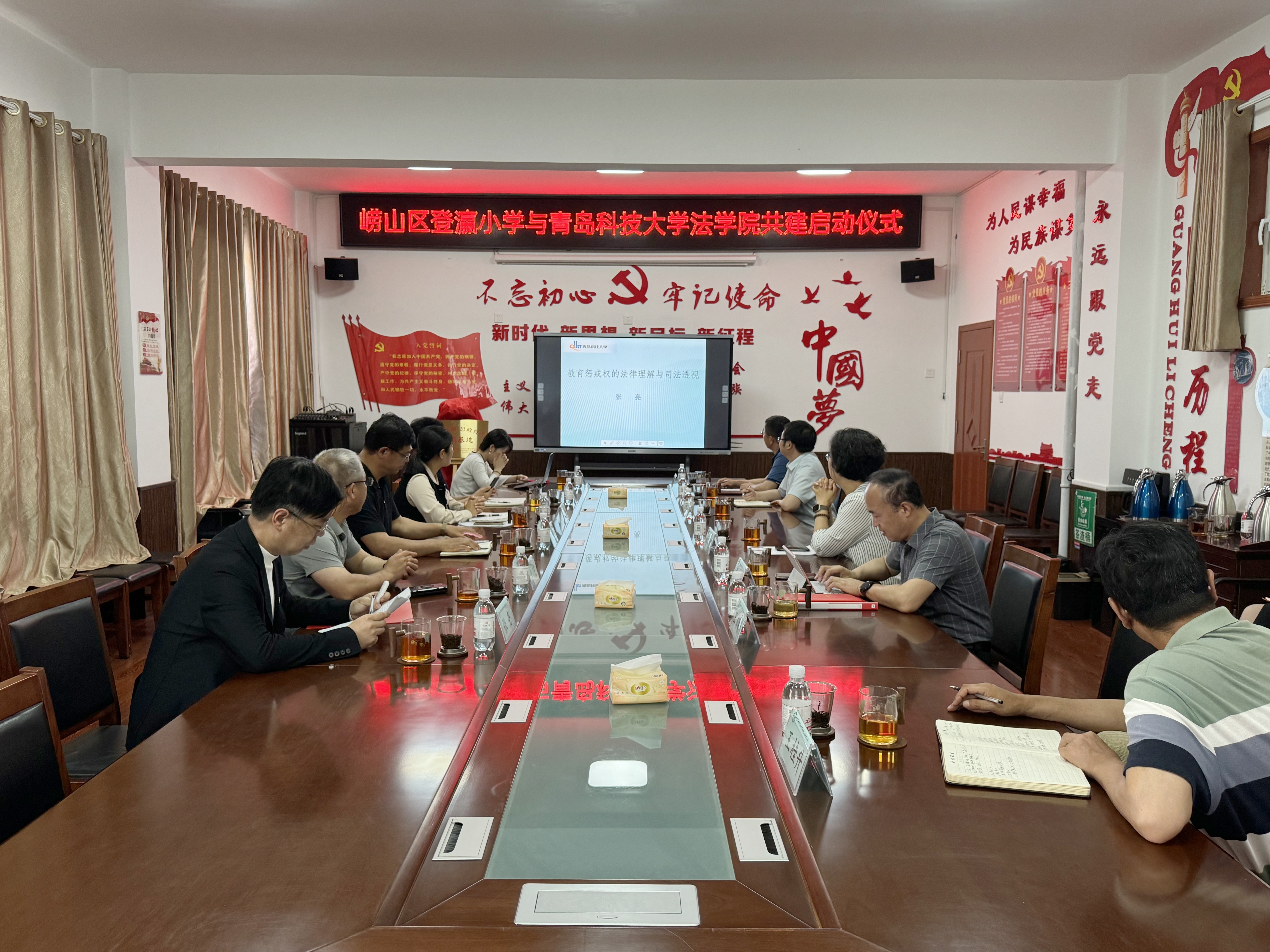 5月22日下午,公司党委书记曲明,党委副书记兼副经理王祥梅,法律系党支部书记张亮,社工系主任、党支部书记王卫国,法律系副主任田源,办公室主任李飞等一行赴崂山区登瀛小学进行共建。