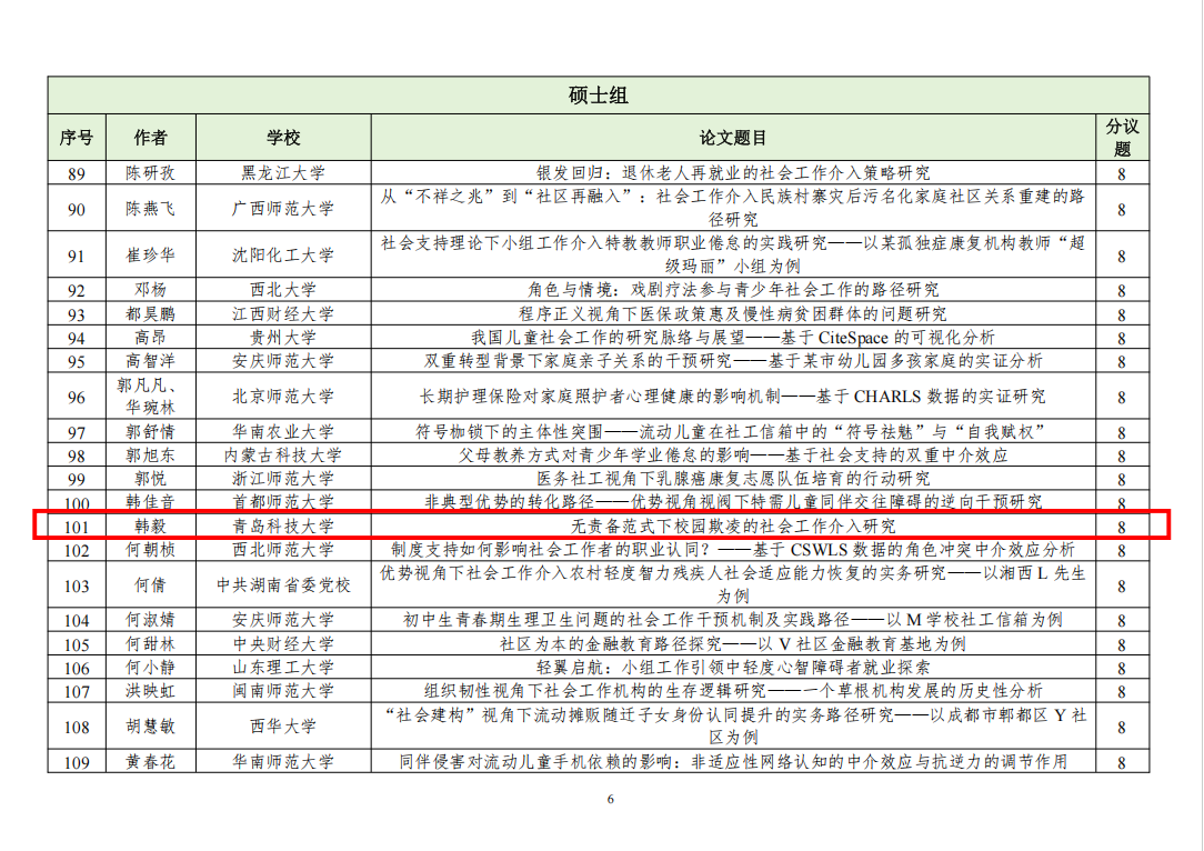 近日,中国社会工作教育协会发布“第十七届中国社会工作老员工论坛暨第十届社会工作研究生论坛”入选通知及名单,自征文通知发布以来,共收到稿件(摘要)831篇,经专家初评,入选549篇。sunbet社会工作系3名硕士研究生和2名本科生论文入选。