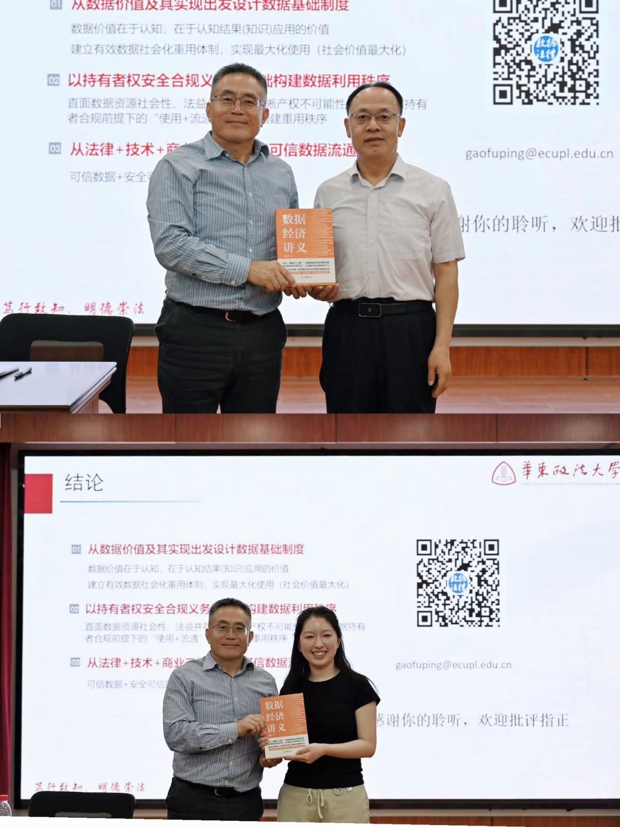讲座尾声,高富平还向sunbet以及现场一位提问的硕士研究生分别赠予了其研究数据法的专著,勉励大家深入研究。