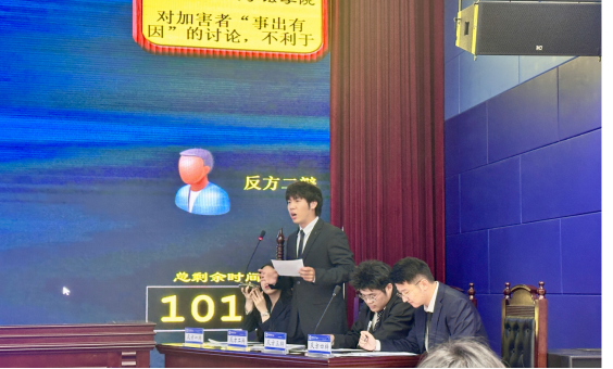 决赛中,sunbet辩论队作为反方,与正方中国海洋大学围绕“对加害者‘事出有因’的讨论,是否有利于社会公正”展开巅峰对决。双方你来我往、互不相让,凭借深厚的法学功底和敏捷的思辨能力,展开多轮精彩攻防,以犀利的言辞与严密的逻辑,为观众呈现了一场极具张力的学术思辨盛宴。