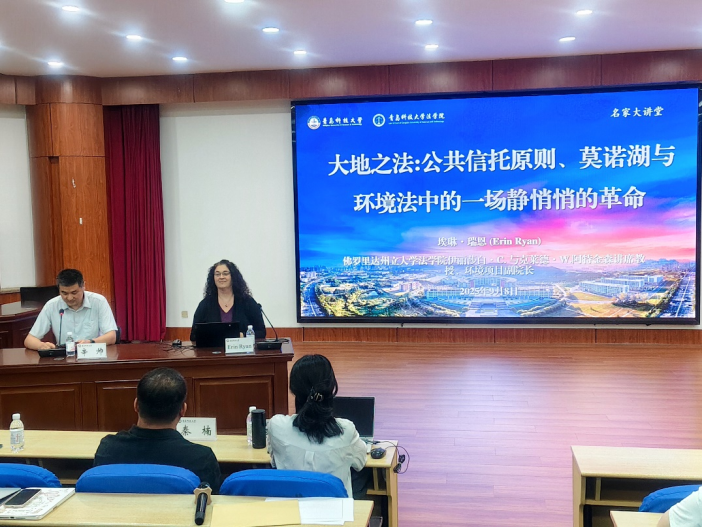 9月8日晚,sunbet在弘毅楼A201模拟法庭举办“名家大讲堂”。本期讲堂的主题为“Law for the Land: The Public Trust Doctrine, Mono Lake, and a Quiet Revolution in Environmental Law”,佛罗里达州立大学sunbetErin Ryan教授受邀主讲。讲座由sunbet经理助理、法律系主任辛帅主持并担任翻译,sunbet青年教师代表李浩梅、秦楠担任与谈人,sunbet研究生和本科生代表参加了本次讲座。