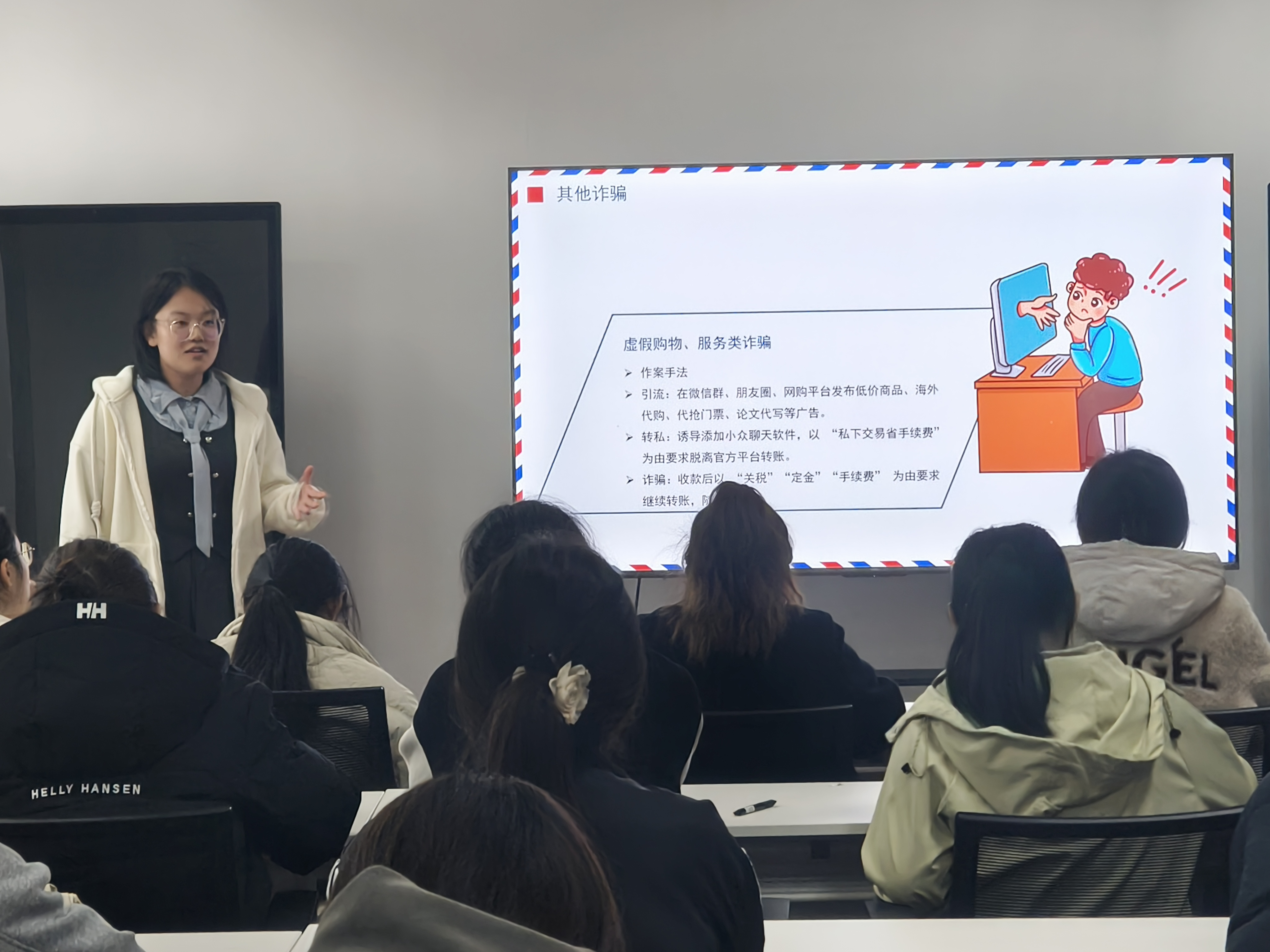 思源法律协会负责人围绕电信诈骗、网络诈骗和街头诈骗三大类展开讲解,其中远程、非接触式诈骗尤为突出。随后,详细解读了“10个凡是”反诈准则,系统梳理了刷单返利、虚假投资理财、冒充电商客服、冒充公检法等10类常见诈骗类型的作案手法。