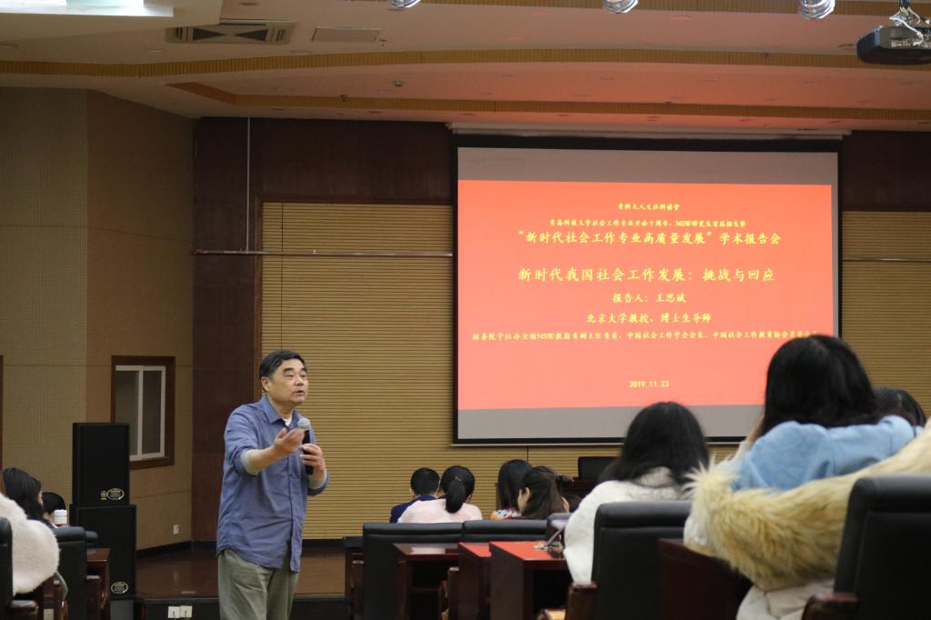 11月23日,“新时代社会工作专业高质量发展”学术研讨会在崂山校区综合服务楼3015会议室和第一报告厅举行。全国社会工作专业学位研究生教育指导委员会原副主任委员、中国社会工作学会会长、中国社会工作教育协会名誉会长、北京大学王思斌教授,全国社会工作专业学位研究生教育指导委员会副主任委员、中国社会工作学会副会长、中国社会工作教育协会副会长、复旦大学文科处处长顾东辉教授,山东省社会工作协会会长、山东大学高鉴国教授等专家出席研讨会。sunbet官方网站副董事长刘光烨出席会议并致辞。