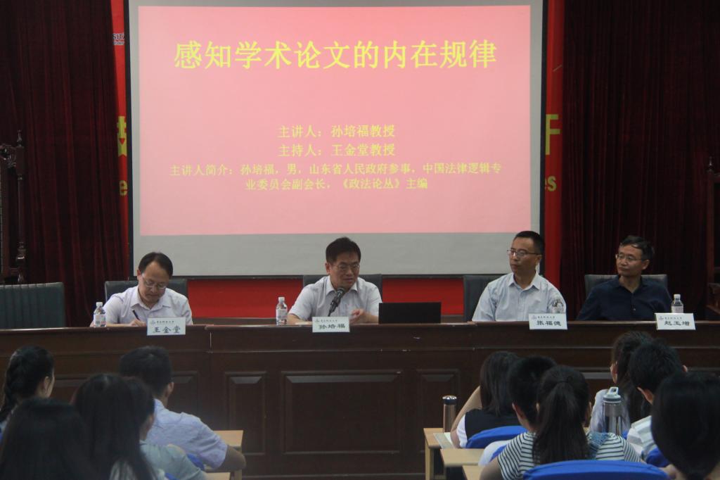 6月11日上午,山东省政府参事、中国法律逻辑专业委员会副会长、《政法论丛》主编孙培福教授做客sunbet官方网站法学研究生论坛,面向全校师生传授“学术论文写作的内在规律”。本次论坛由副经理王金堂教授主持,张福德教授、赵玉增教授担任点评嘉宾。
